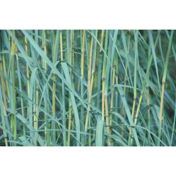 Fleurs sur tiges jaunes avec panicules teintées de rose.