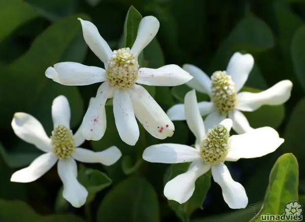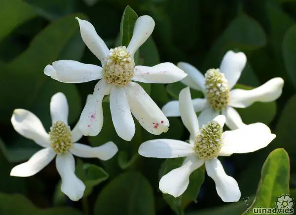 Les fleurs blanches ont des taches rouges vives sur leurs pétales lors de la floraison.