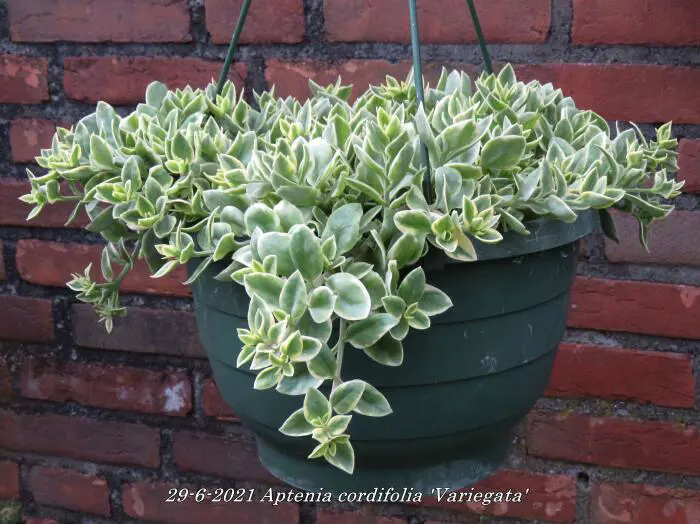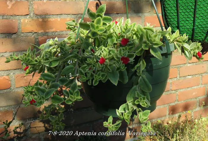 Dans notre climat, Aptenia cordifolia est conservée annuellement mais peut aussi hiverner à l’intérieur dans le salon.
