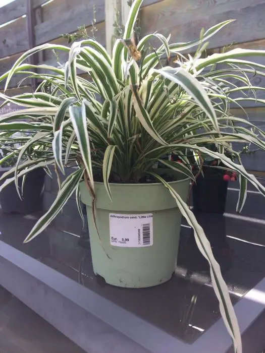 Elle forme un groupe de longues feuilles étroites, vertes semblables à de l’herbe.