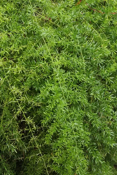 Asparagus densiflorus 'Sprengeri' possède un feuillage très fin avec des feuilles et des épines en forme d’aiguilles.