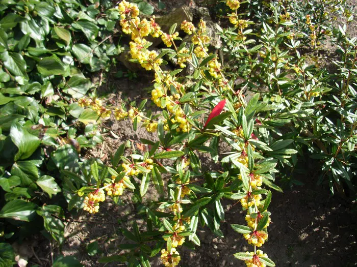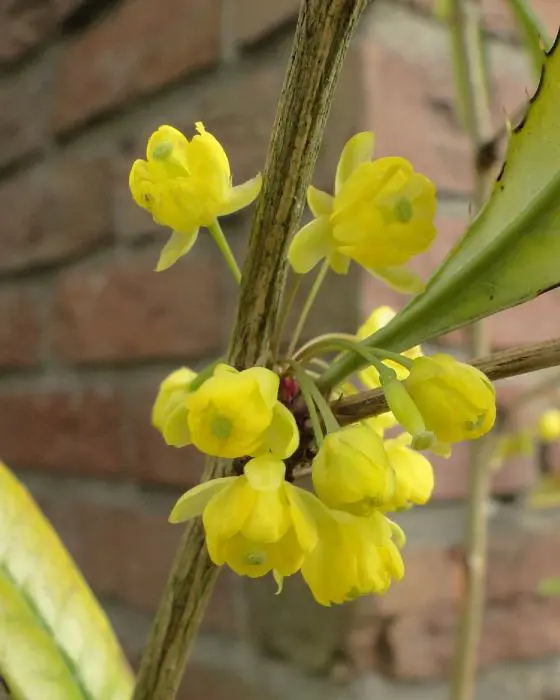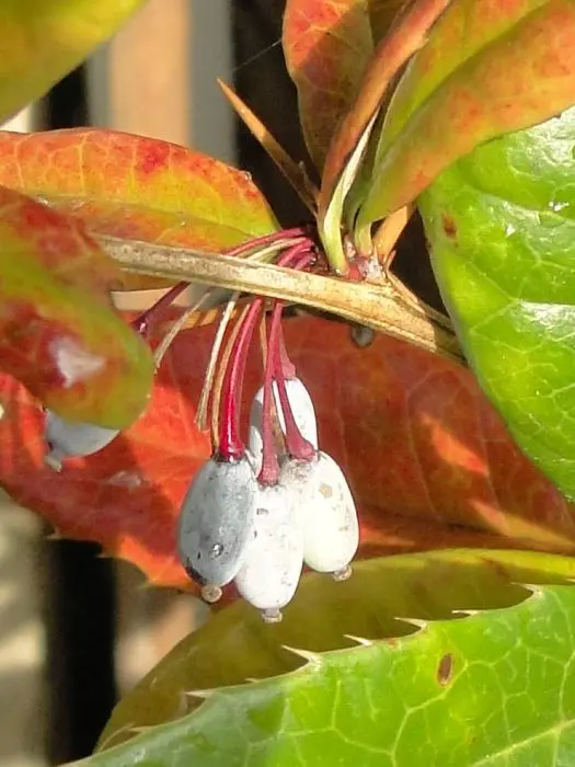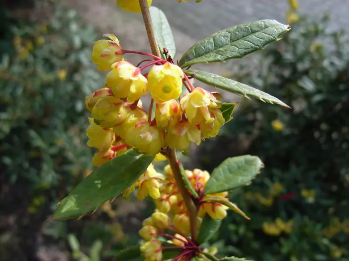 Berberis julianae est un arbuste très épineux, compact et très dense, avec des branches légèrement en surplomb et des feuilles vert foncé brillantes qui deviennent rouges par temps froid.
