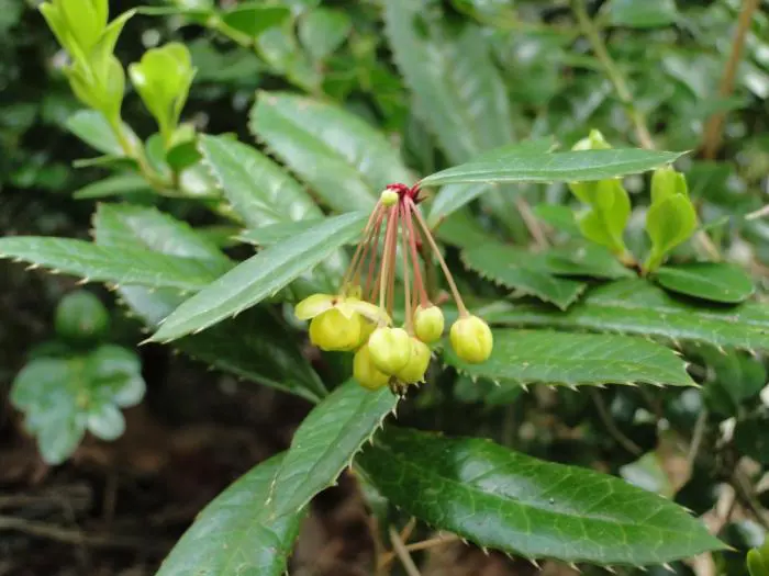 Fleurs au printemps, parfois post-floraison en septembre, avec de petites fleurs jaunes suivies de petites baies bleu-noir.