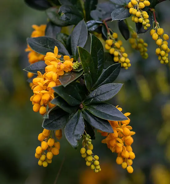 Berberis trigona 'Orange King' est un magnifique arbuste droit aux branches robustes, épineuses et jaunes