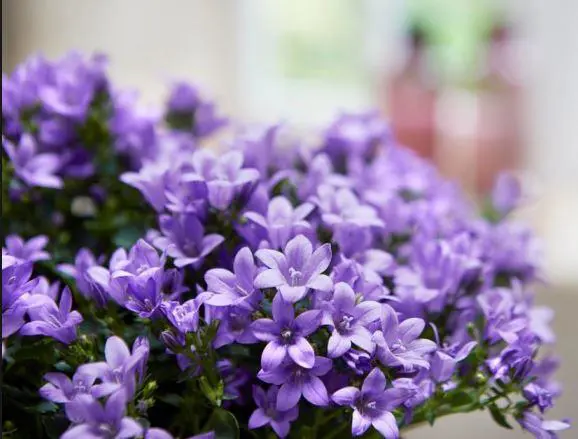 La Campanula 'Ambella bleu' forme une plante sphérique compacte avec des fleurs violettes en forme de cloche. Peut être placé à l’intérieur comme à l’extérieur, dans des pots ou au sol ouvert.