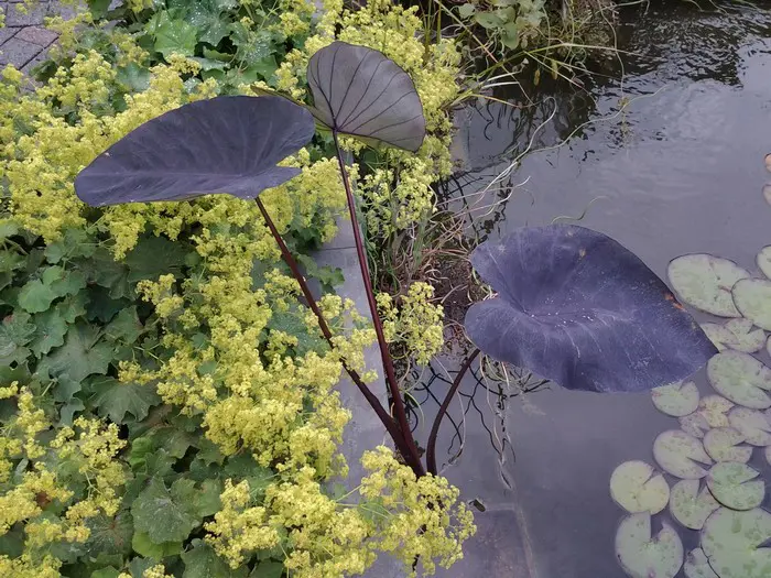 Colocasia esculenta 'Black Magic' est une plante tropicale originaire d’Asie et reste plus petite que la plupart des autres variétés.
