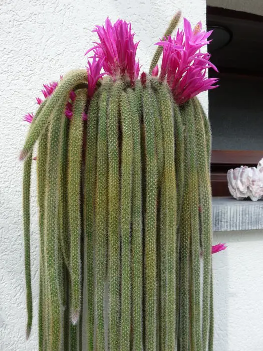 Disocactus flagelliformis est originaire du Mexique. Elle forme de longues tiges rondes pendantes qui se dévoilent d’elles-mêmes, surtout dans des paniers suspendus. Les tiges sont couvertes d’épines touffues.