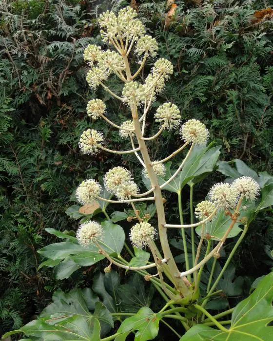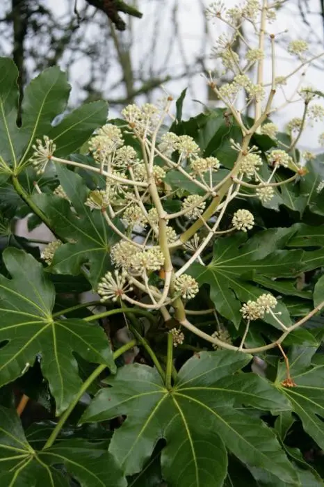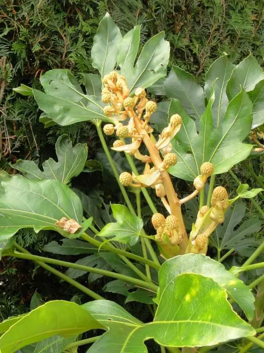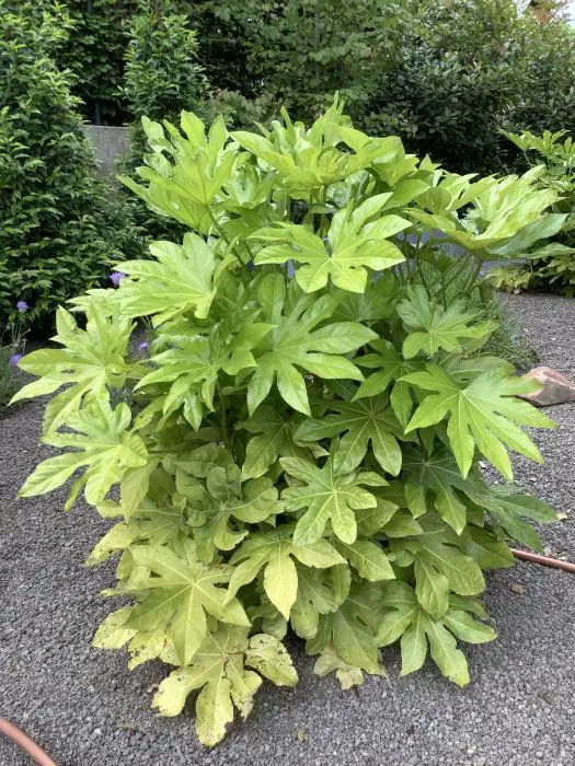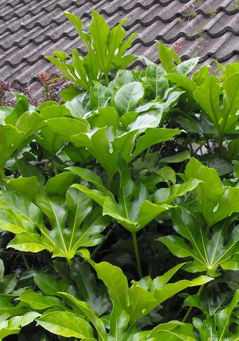 Fatsia japonica est une plante à croissance rapide avec des feuilles lobulées et vert brillant. Possède de grandes feuilles de 15 à 30 cm de large sur une tige tout aussi longue.
