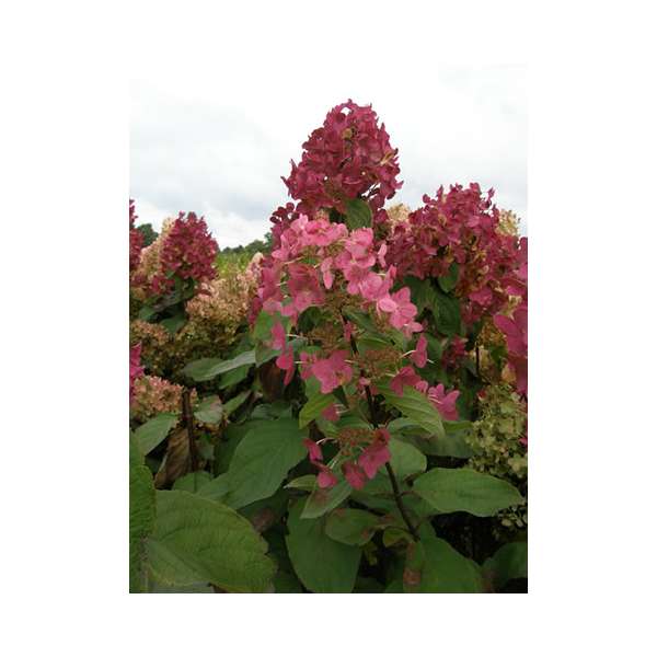 L’hortensia paniculata 'Mega Mindy' fleurit avec des panicules florales blanches qui prennent une couleur rose-rouge frappante en automne.