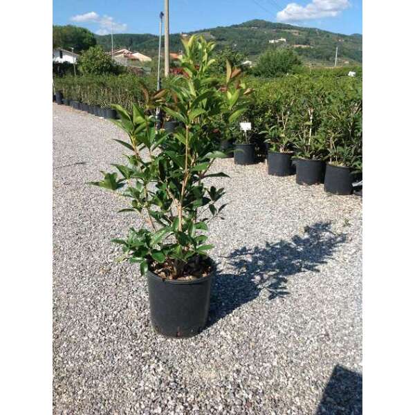 Osmanthus fragrans est un arbuste/arbre rond compact originaire de Chine et du Japon. Bien ramifié avec des branches gris argenté et des feuilles vert foncé brillantes.