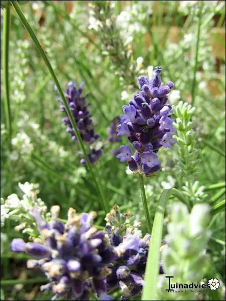 Lavandula angustifolia 'Hidcote White' est un semi-arbuste largement utilisé dans les jardins pour combler les zones de plantation. Ils sont magnifiques, aux feuilles grises, avec des fleurs roses, et ressemblent à un endroit ensoleillé qui n’est pas trop humide en hiver.