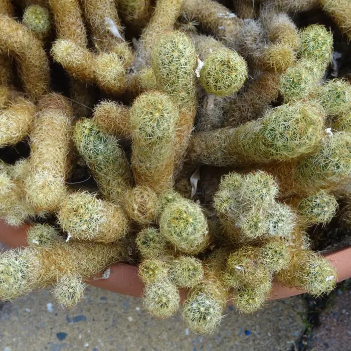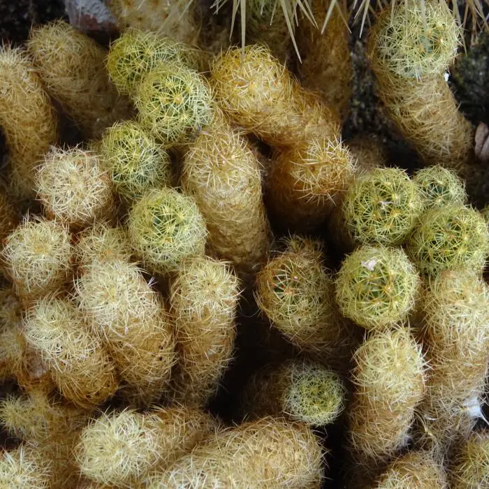 Mammillaria elongata est un cactus piquant originaire du Mexique, avec de multiples tiges cylindriques, densément couvertes d’épines jaune crème clair, semblables à des poils. En grandissant, les tiges s’allongent.