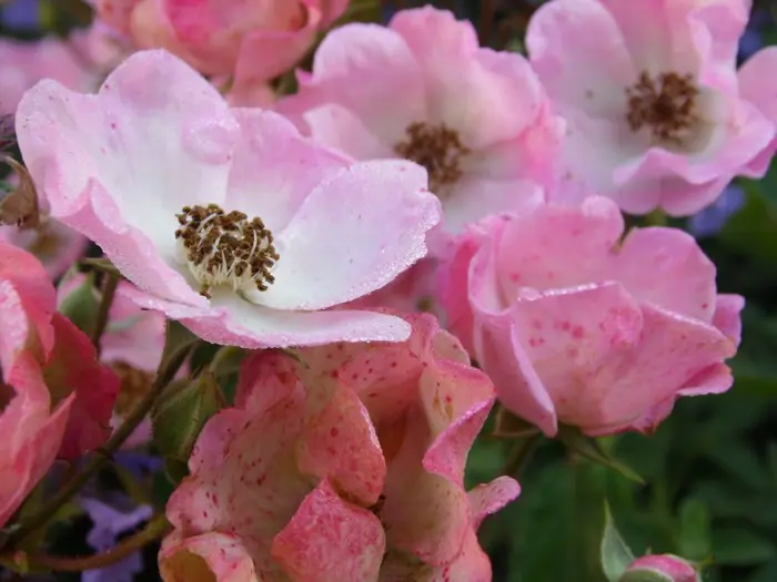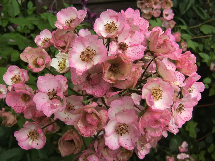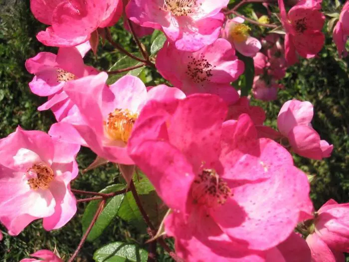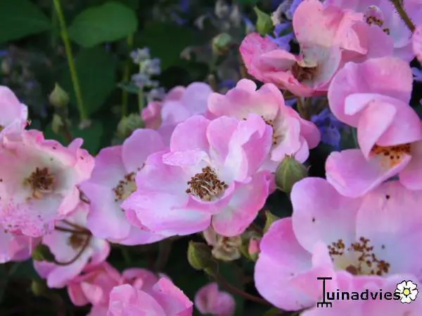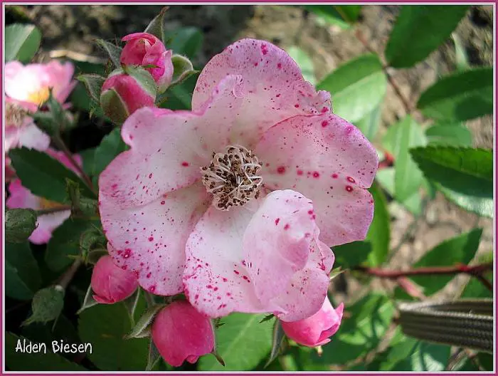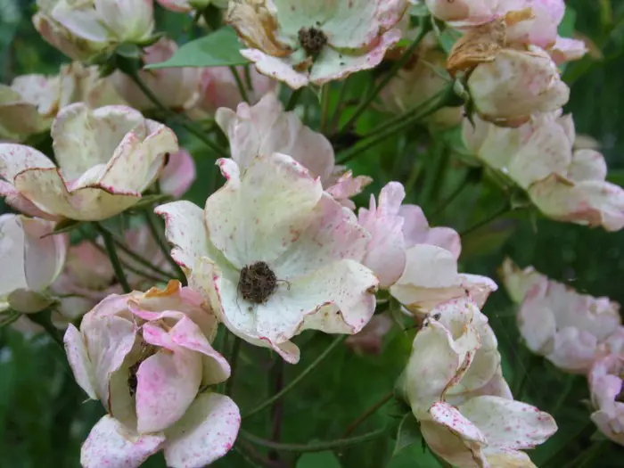 La couleur est marsepain rose sur les bords et plus claire à blanche vers le centre. Les fleurs deviennent ensuite vert clair, puis se terminent par de magnifiques hanches rouges.