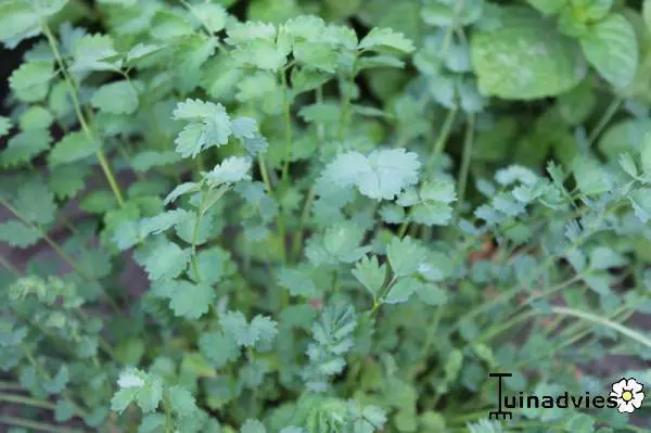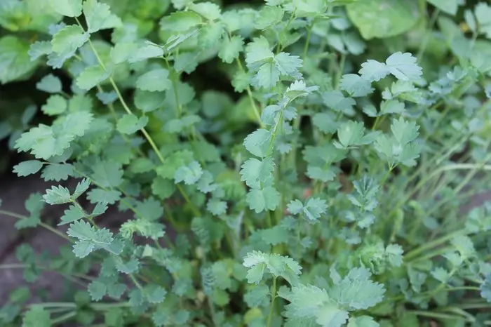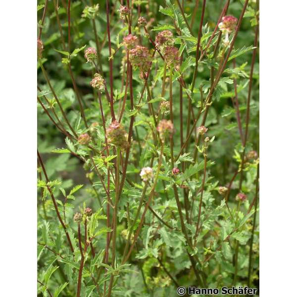 Sanguisorba minor est une plante vivace forte avec un habit étendu et de petites feuilles bleu-vert.