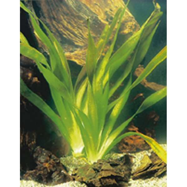 C’est une plante d’aquarium avec de longues feuilles fines, dressées et vertes, qui pousse à 18/28°C avec beaucoup de lumière.
