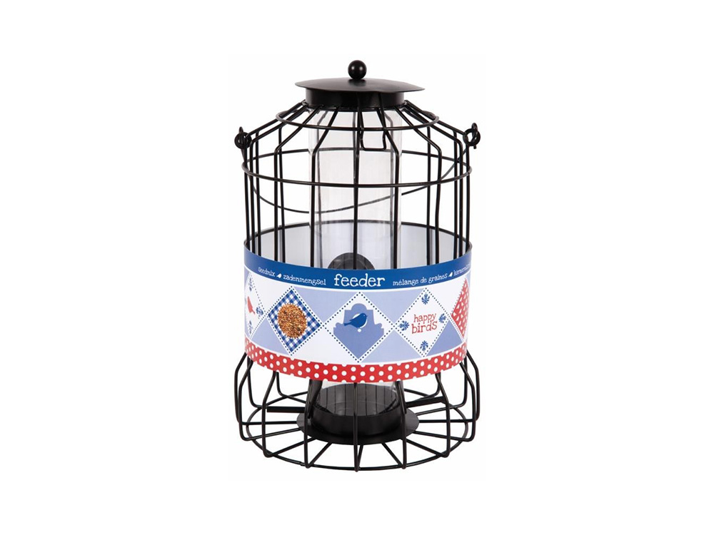 Ce silo innovant pour semences permet uniquement aux petits oiseaux de manger la nourriture. La cage protectrice autour du silo tient à distance les corbeaux, les pies, les choucas et d’autres grands oiseaux. Avec quatre ouvertures, les petits oiseaux peuvent facilement accéder à la graine.