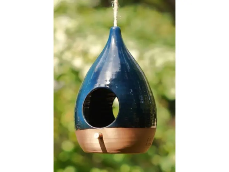 Mangeoire à oiseaux en céramique vert et terre cuite