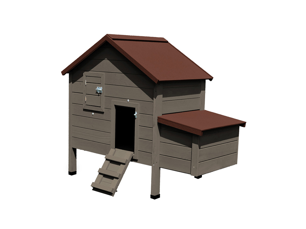 Avec Poulailler Flora , vous apportez un magnifique chalet pour vos poules dans votre jardin. Chicken Coop Flora a un nid de ponte que vous pouvez monter à gauche ou à droite. Vous pouvez facilement collecter les œufs par le toit du nid. Ce poulailler se dresse haut du sol, les pattes sont protégées par des pattes en plastique. La passerelle est aussi la porte de nuit du loft.