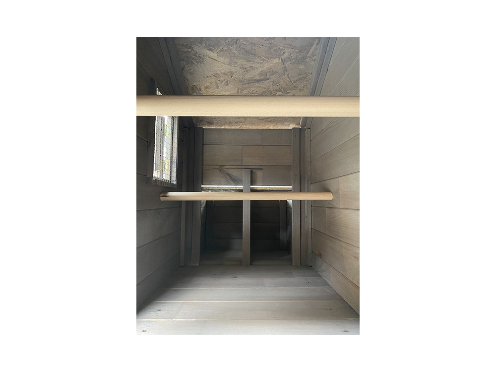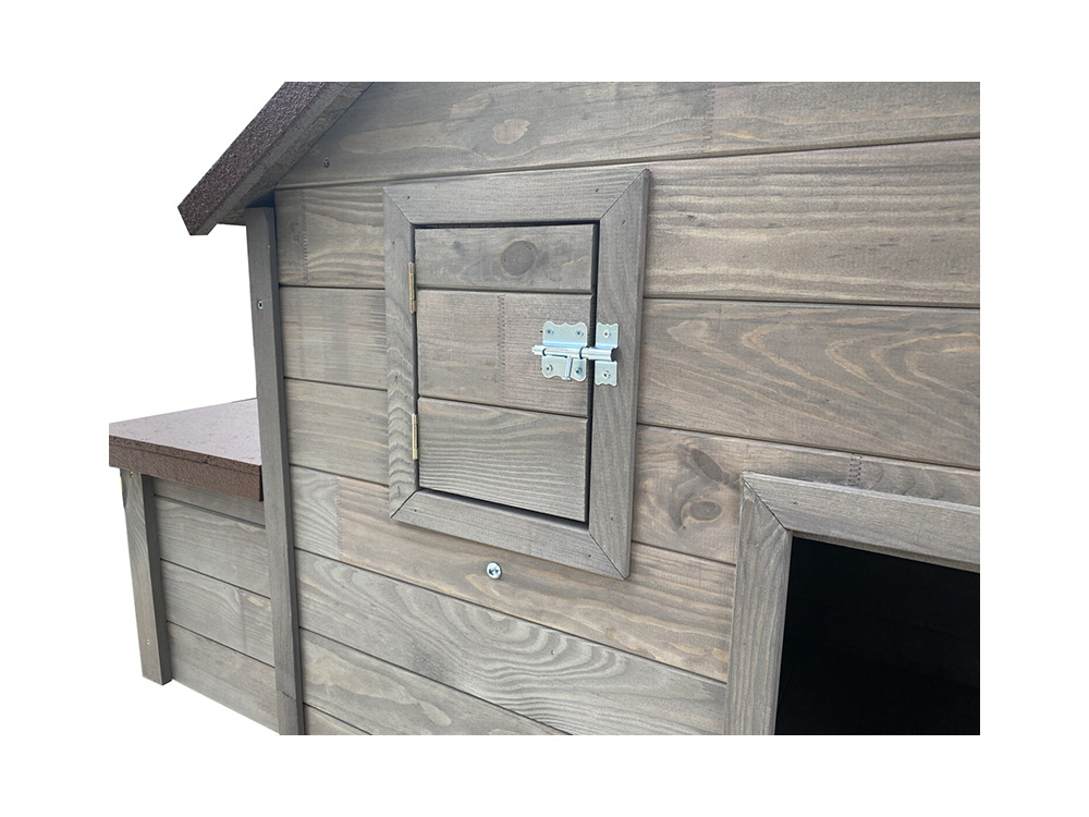 Le chalet de poules est donc entièrement verrouillable et très facile à nettoyer grâce à la porte spacieuse du côté opposé au nid de ponte. La fenêtre est un joli supplément pour la ventilation du loft, elle est aussi verrouillable.