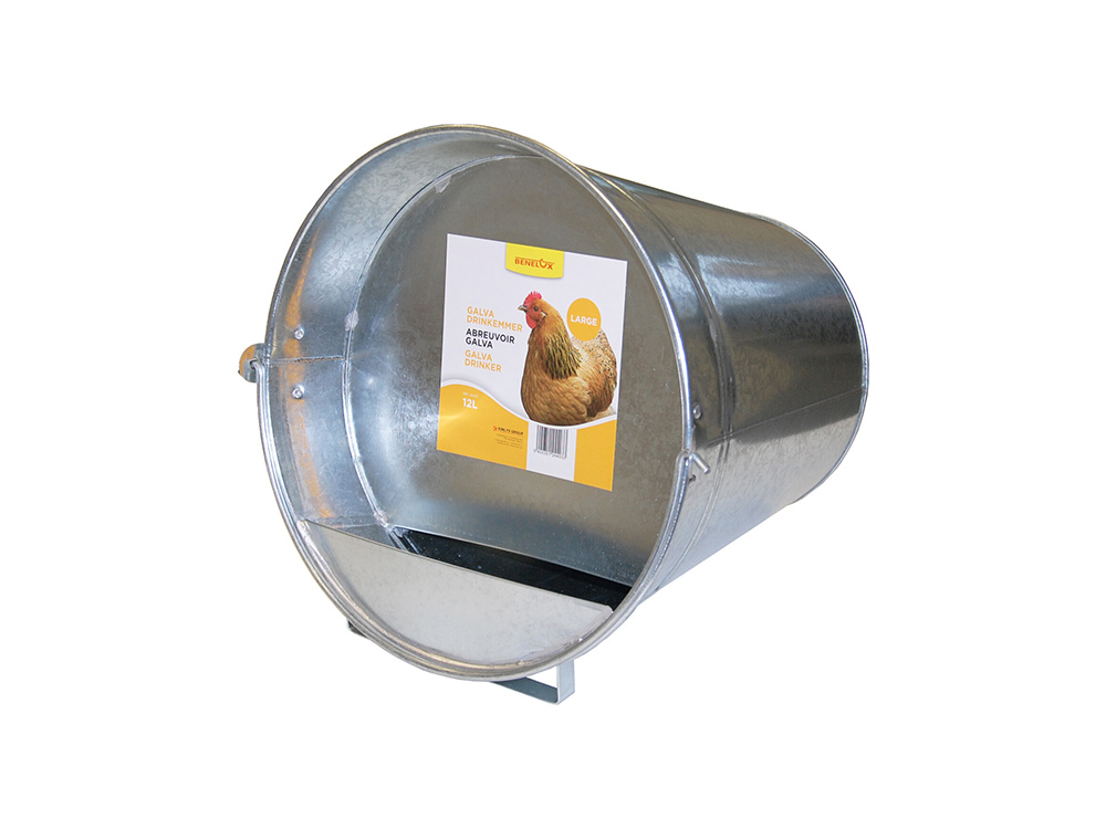 La construction du seau garantit qu’il ne s’écoule pas et que les poulets ou autres volailles peuvent absorber l’eau par une ouverture étroite pour boire.