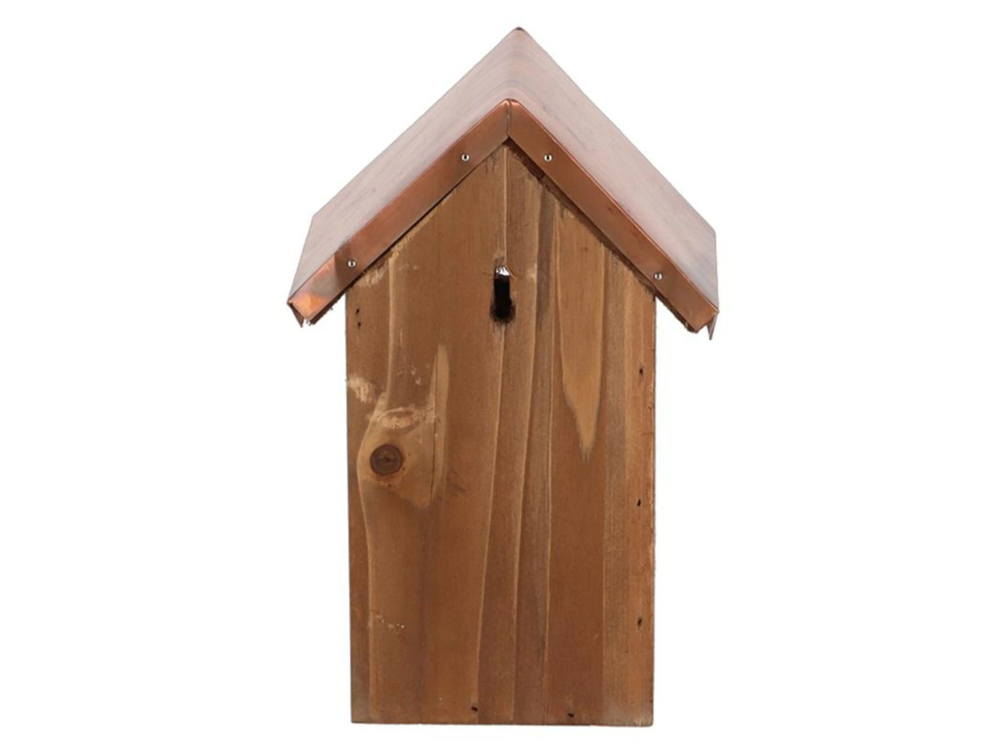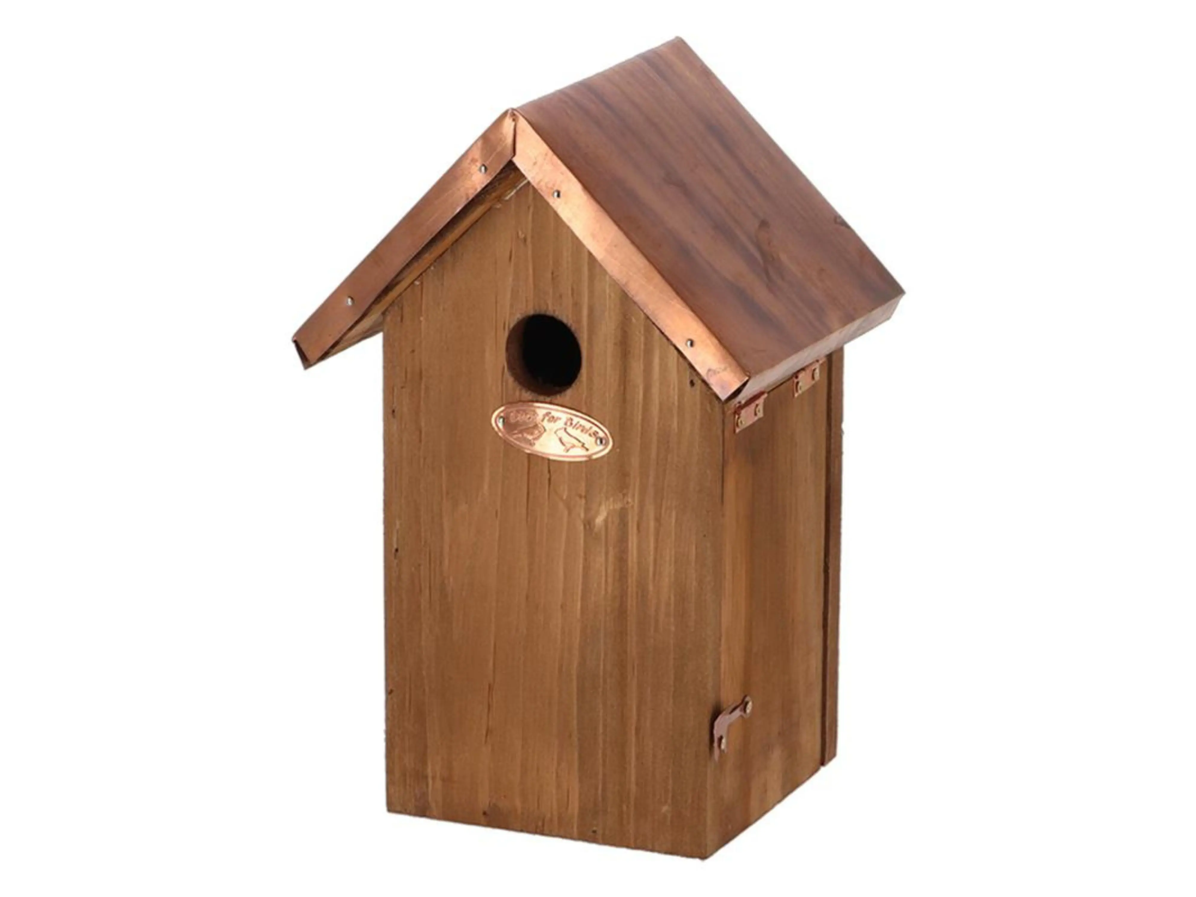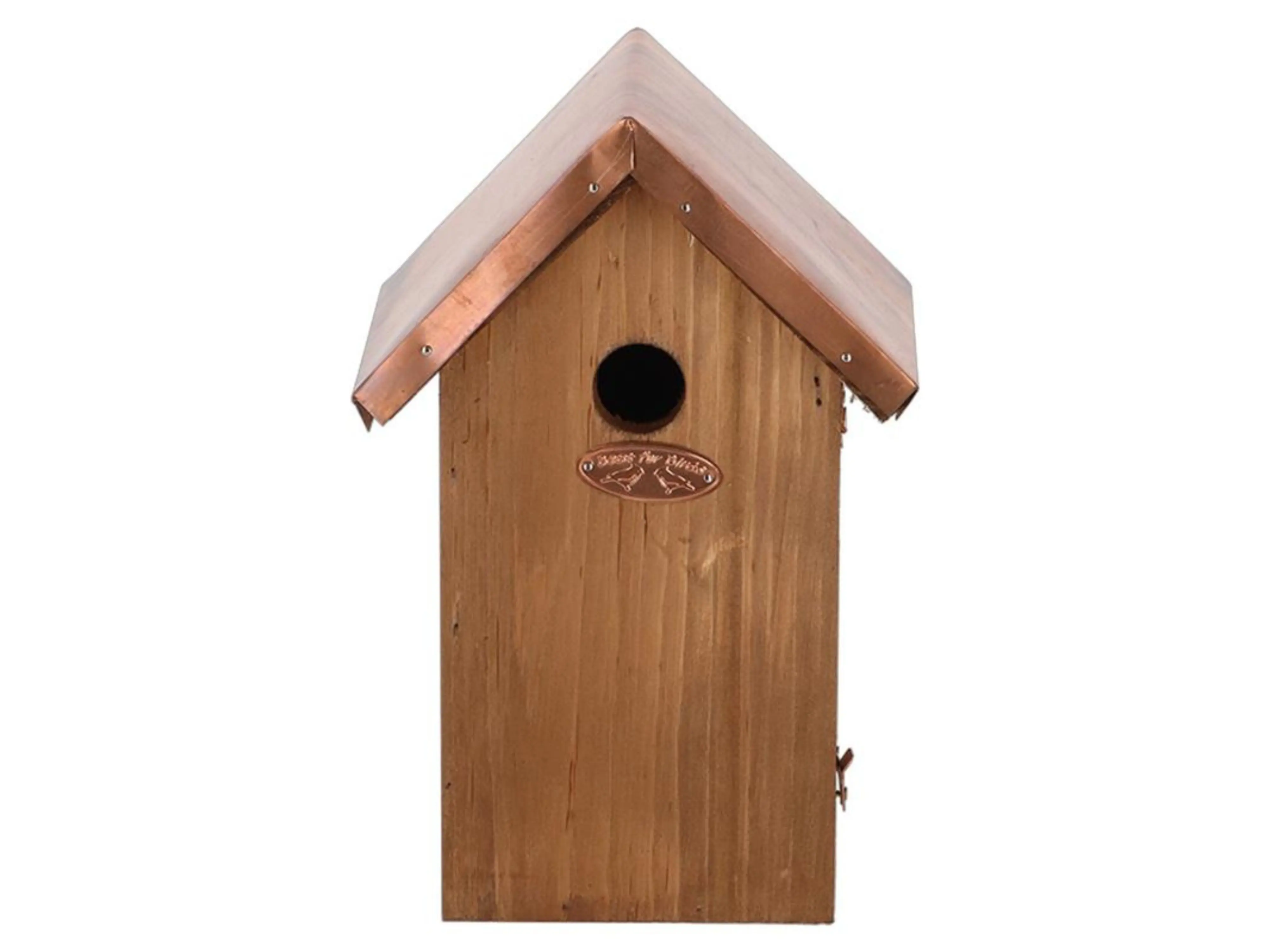 Cette nichoir traditionnelle , à l’aspect rural et au toit élégant en cuivre, offre un lieu sûr de nidification et de cachette pour diverses petites espèces, dont le bleu, le crête, le brillant, le saule et le noir. Grâce à l’ouverture de vol de 27 mm , la boîte à nids est parfaitement adaptée à ces oiseaux et offre une protection contre les prédateurs et les espèces d’oiseaux plus grandes.