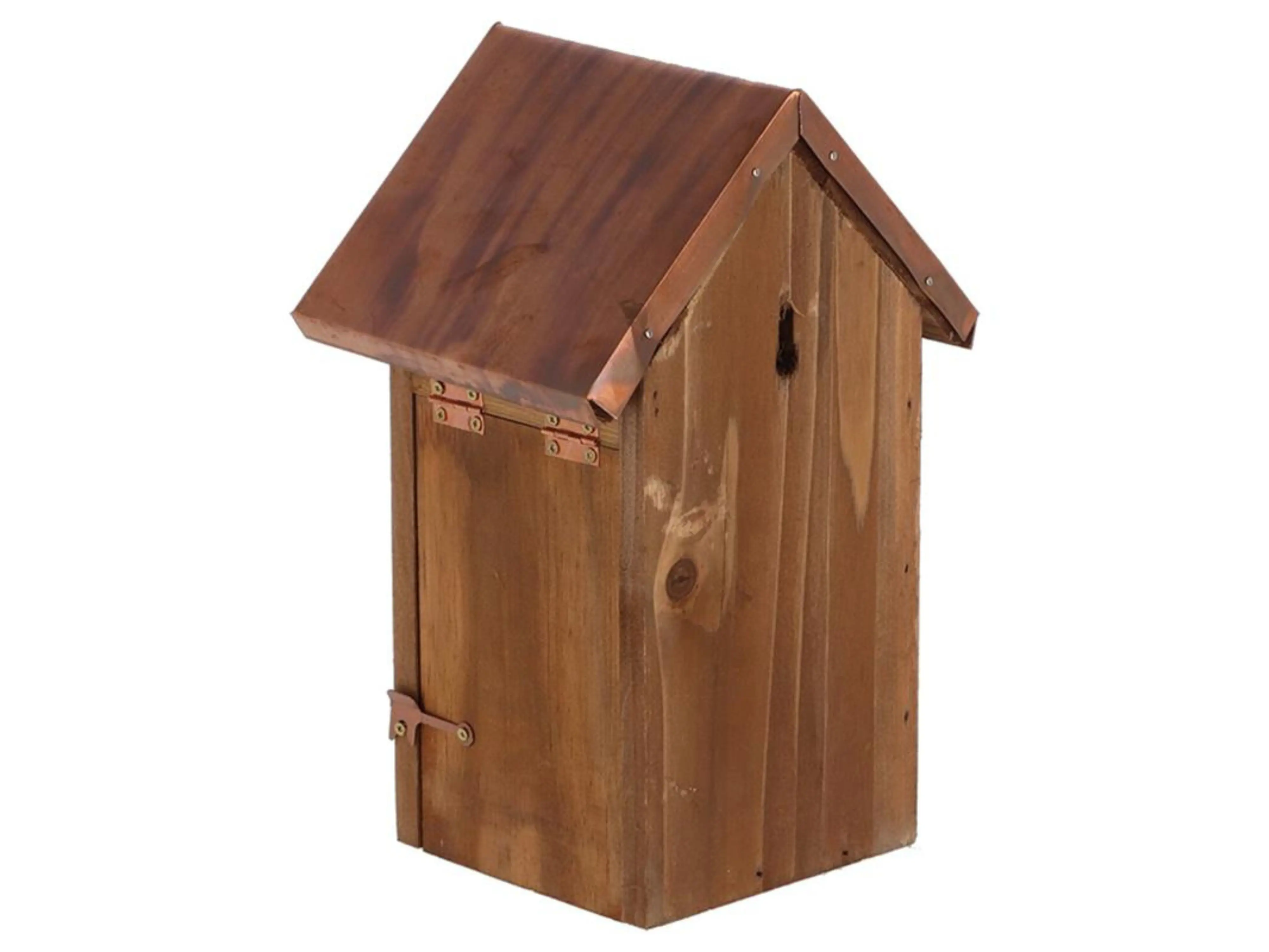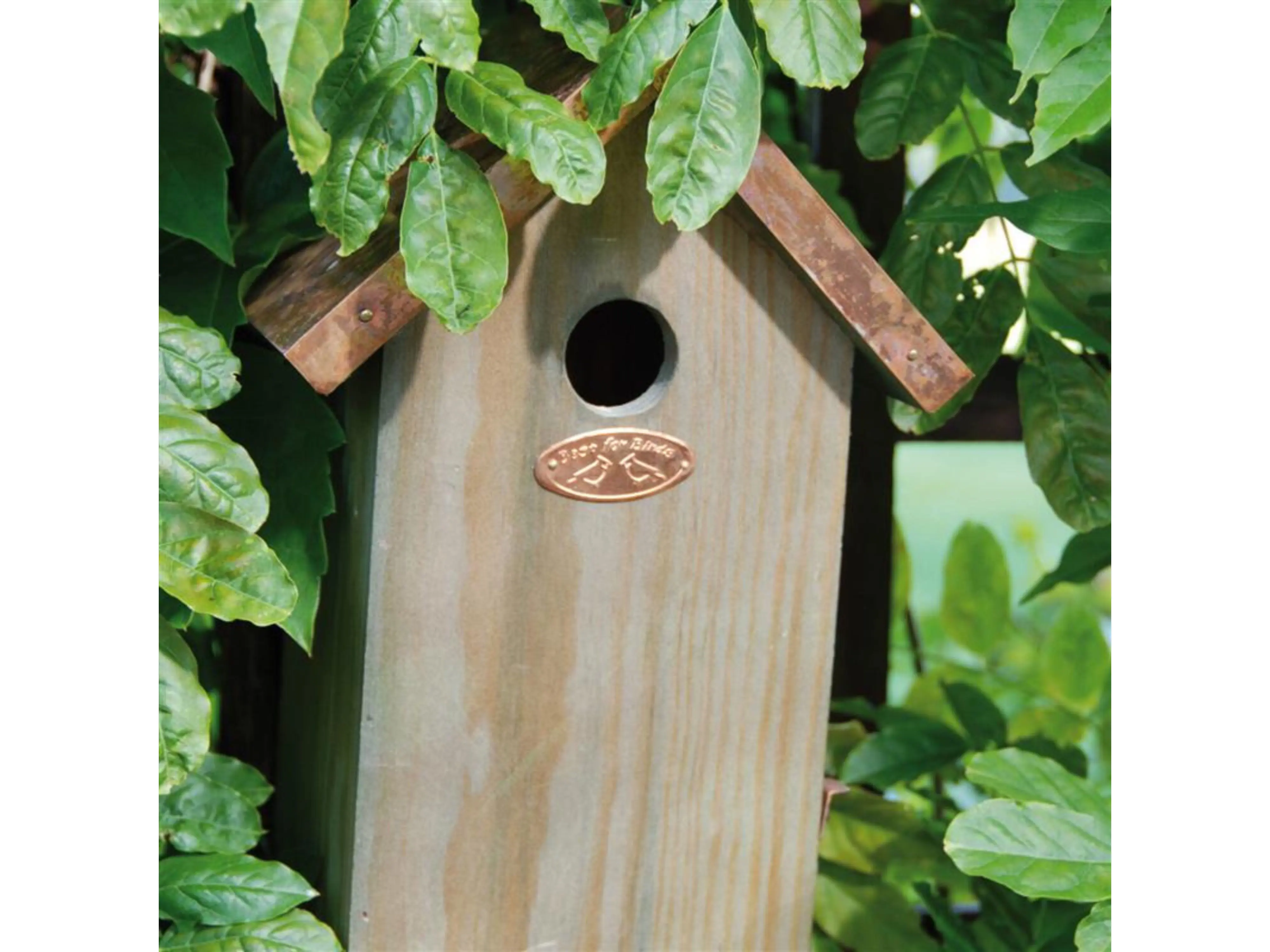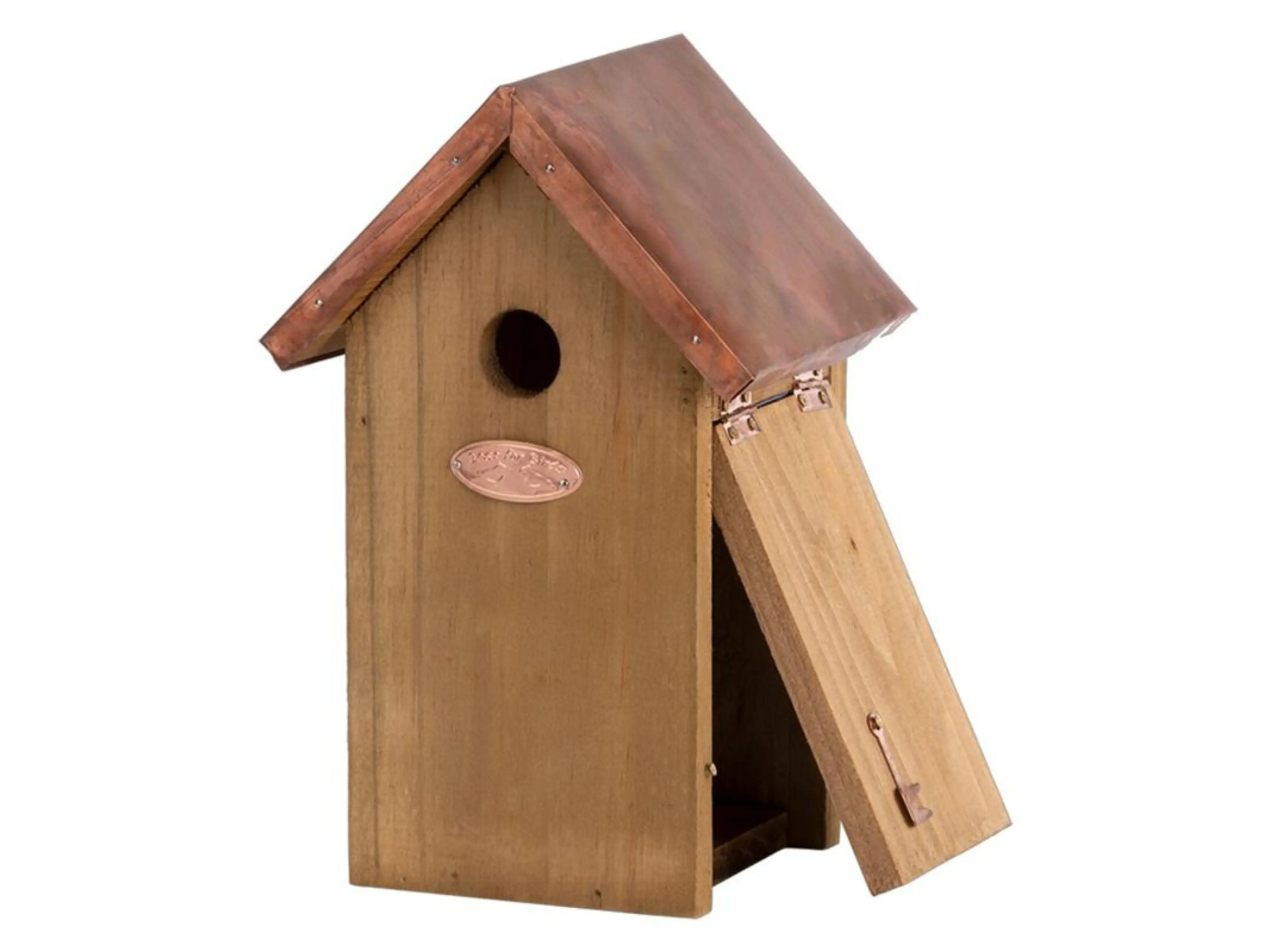 Cette nichoir traditionnelle , à l’aspect rural et au toit élégant en cuivre, offre un lieu sûr de nidification et de cachette pour diverses petites espèces, dont le bleu, le crête, le brillant, le saule et le noir. Grâce à l’ouverture de vol de 27 mm , la boîte à nids est parfaitement adaptée à ces oiseaux et offre une protection contre les prédateurs et les espèces d’oiseaux plus grandes.