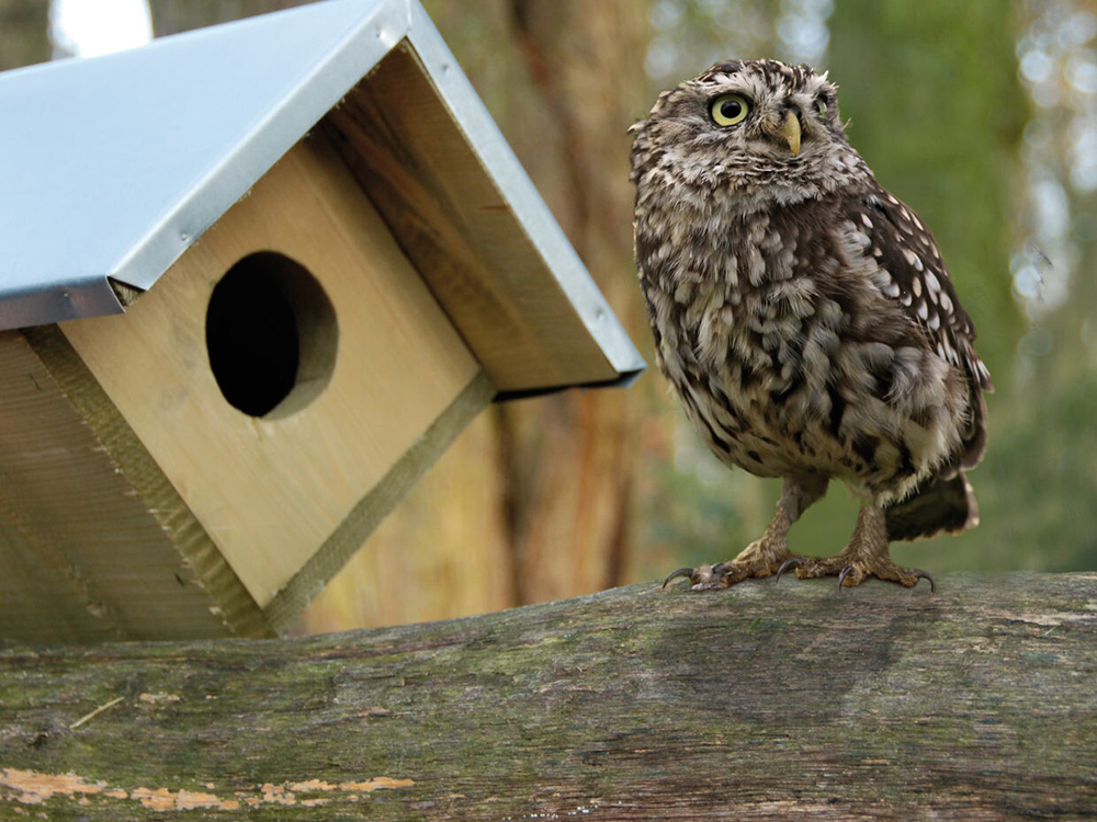 Les petites chouettes, qui mesurent environ 23 cm, se cachent pour dormir pendant la journée. Au crépuscule, ils deviennent actifs et partent à la chasse. Suspendez la boîte à nids dans une partie de l’arbre qui ne soit pas trop feuillue, afin que l’entrée reste libre, ou suspendez-la sur la façade avec les lattes suspendues fournies. Orientez le trou de vol vers le sud-est pour protéger contre la pluie battante. Choisissez toujours un endroit à l’ombre pour éviter que la boîte à nids ne chauffe. Installez-les légèrement inclinés à 5° vers l’arrière.