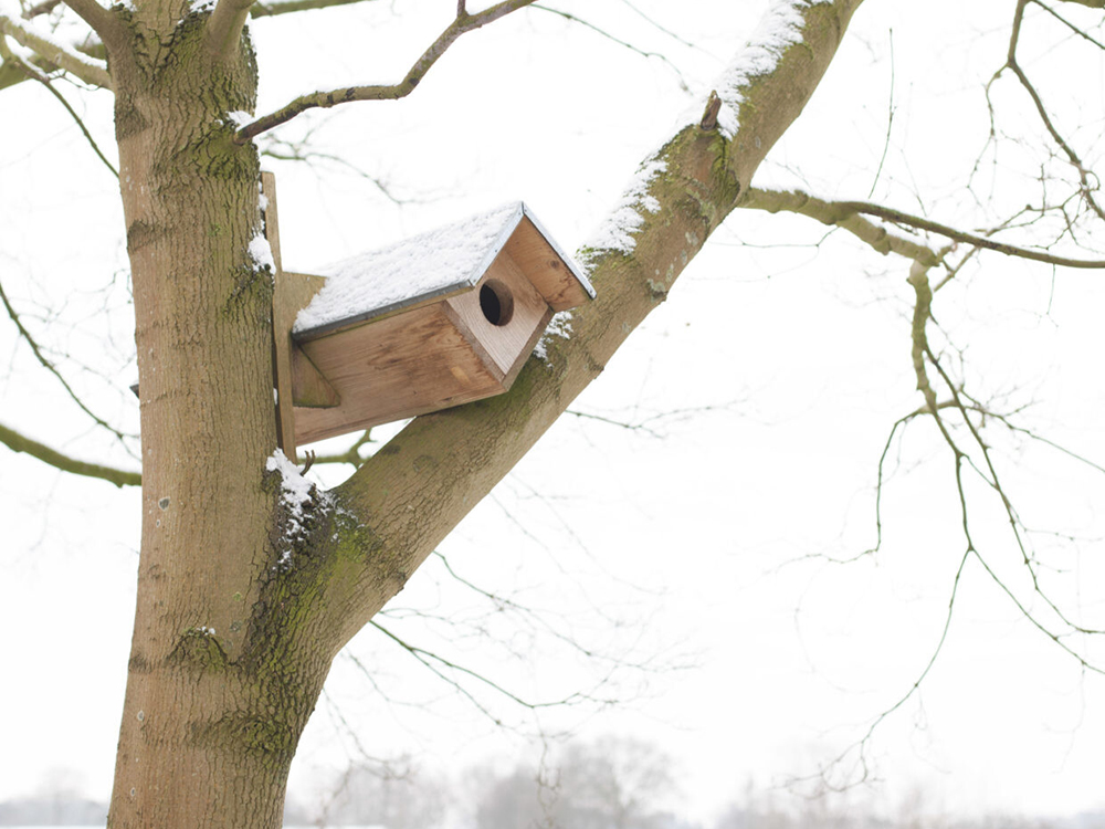 • Accrochez la boîte à nids à une hauteur de 3 à 5 mètres