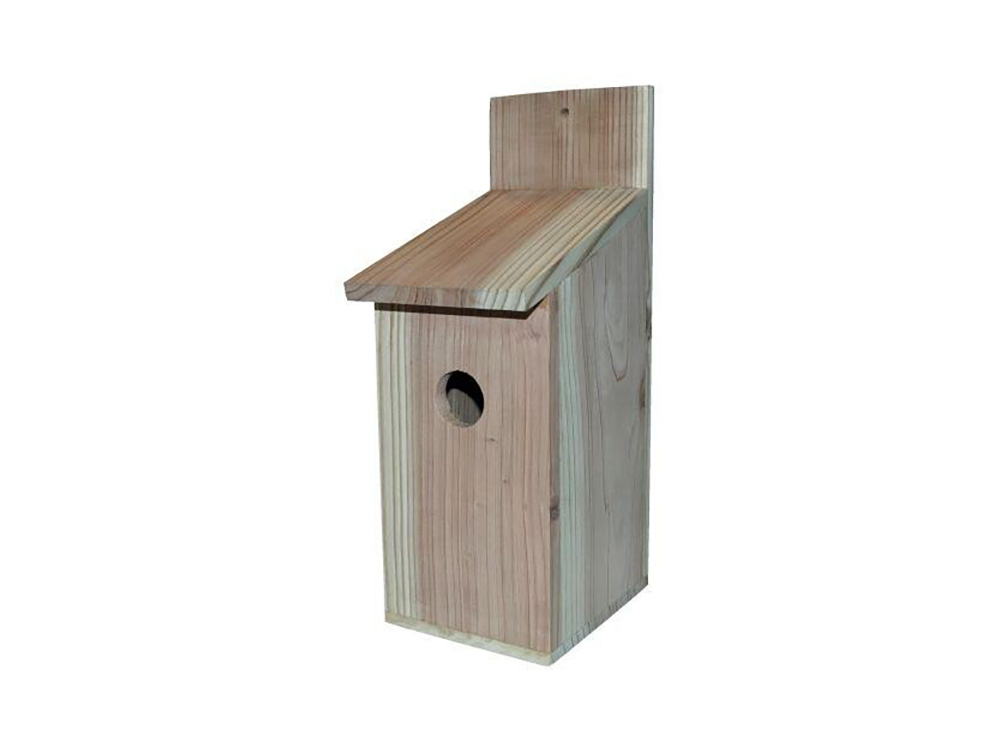 La niche à oiseaux est en bois de pin et possède une ouverture d’entrée de 32 mm. Le toit peut être ouvert pour que vous puissiez facilement nettoyer la boîte à nids après la saison de reproduction à l’automne.