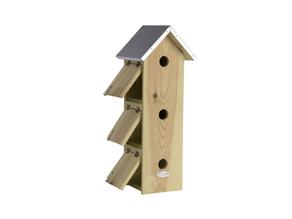 Une jolie boîte à nidification pour moineaux avec 3 pièces superposées, idéale pour trois familles de moineaux. La plaine des moineaux possède 3 nichoirs séparés car les moineaux sont des colonies reproductrices et aiment nicher près les uns des autres. Chaque pièce possède sa propre ouverture d’entrée et une porte séparée pour nettoyer les pièces après la saison de reproduction.