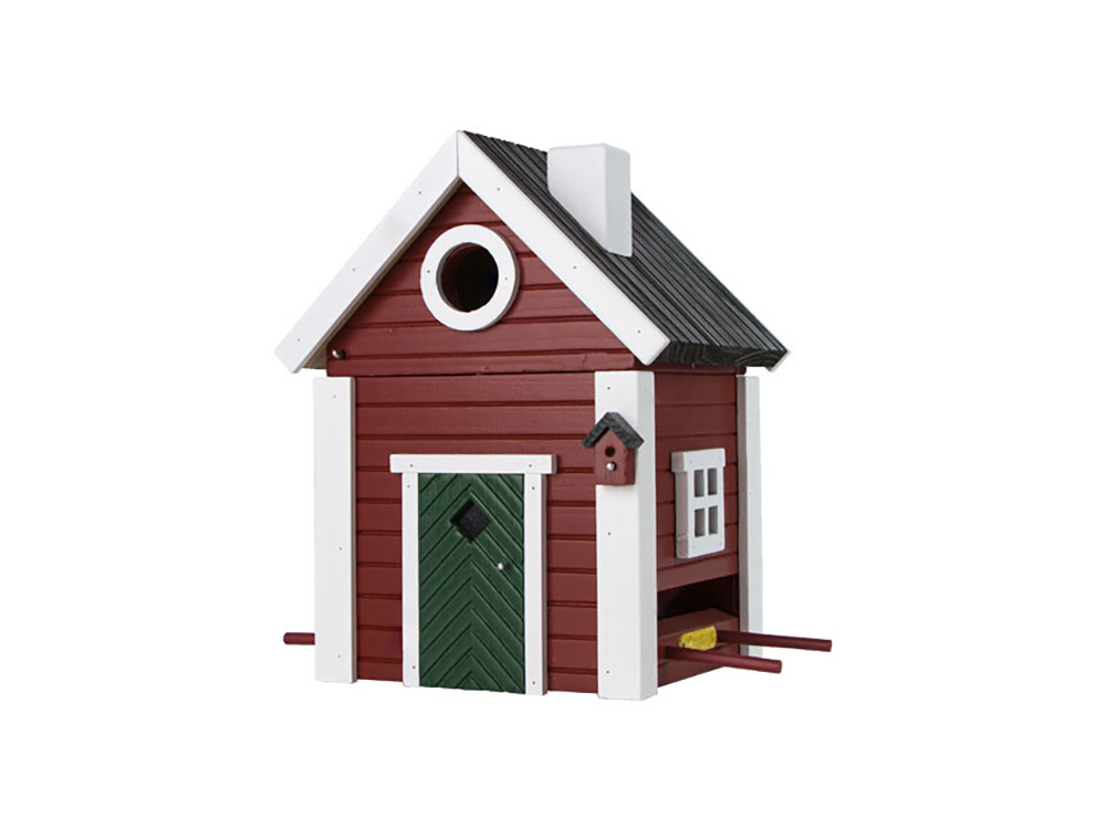 Nichoir et maison d’alimentation sous un même toit, conçus d’après l’exemple des habitations traditionnelles de Scandinavie ou des maisons américaines de la Nouvelle-Angleterre. Cette niche unique peut être fixée à un poteau ainsi qu’à une clôture ou un mur avec le matériau de fixation inclus. La niche peut servir de maison de nourrissage en hiver et de nichoir au printemps.
