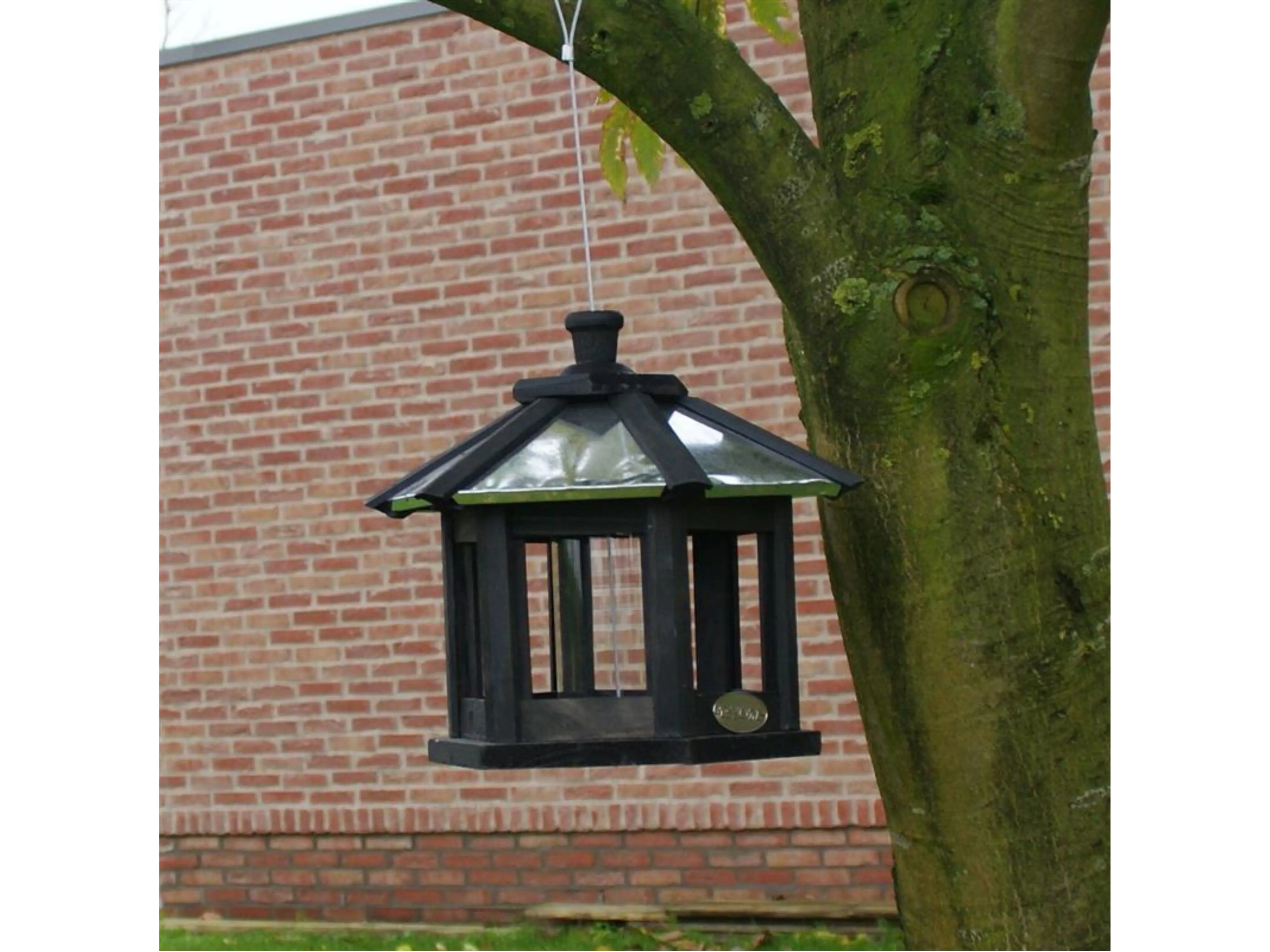 La maison d’alimentation peut être placée sur une table, mais elle peut aussi être facilement suspendue à une branche, une pergola, une arche de rose avec un fil d’acier plastifié très solide,... Le remplissage est facile grâce au couvercle amovible.