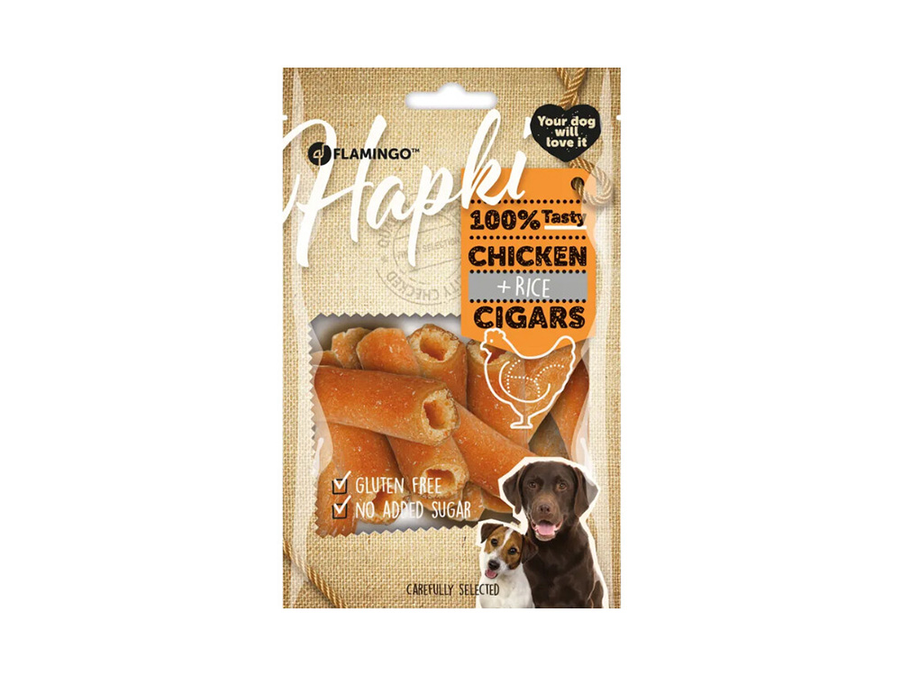 Snack pour chien flamant rose Cigares Hapki avec poulet et riz - 85 g