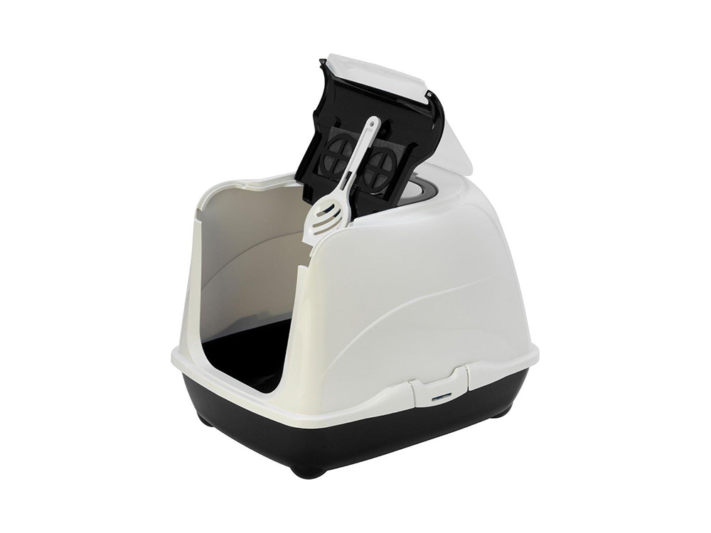 Les toilettes Loki pour chat sont très pratiques à utiliser. La porte pliante semi-transparente à l’avant peut s’ouvrir jusqu’à mi-chemin du couvercle pour avoir un accès facile à la litière. Le dessus peut aussi être complètement retiré grâce à deux serre-joints fixés en bas.