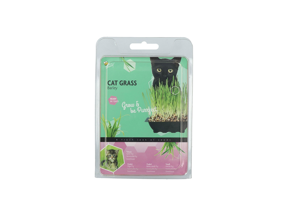 15 grammes de graines d’herbe à chat à croissance rapide + bol avec hydrogranules et serre. Lorsqu’il se lave, un chat ingère beaucoup de poils, qui resteront dans l’estomac sous forme de boule indigérable après un certain temps. En mangeant de l’herbe ou d’autres feuilles, ces poils sont éliminés naturellement. Aidez la nature et donnez de l’herbe à votre chat. Les problèmes digestifs sont évités.