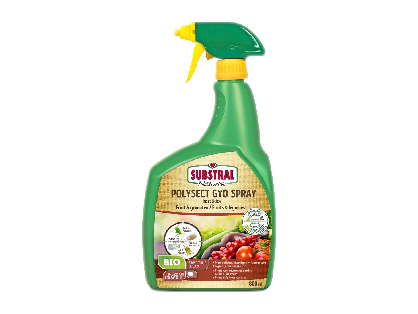 Le Substral Polysect GYO est un insecticide végétal qui combat une grande variété d’insectes présents dans le jardin, tels que les pucerons, les cochenilles farineuses et les acariens sur les arbres fruitiers, légumes, arbres ornementaux et plantes comme les rosiers.