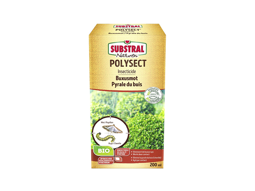Le substral Naturen Polysect est un insecticide concentré contre le papillon du buis. Cet insecticide biologique garantit que vous pouvez préserver vos buis. Le concentré combat les œufs, les chenilles et les papillons de buis, et protège les buis.