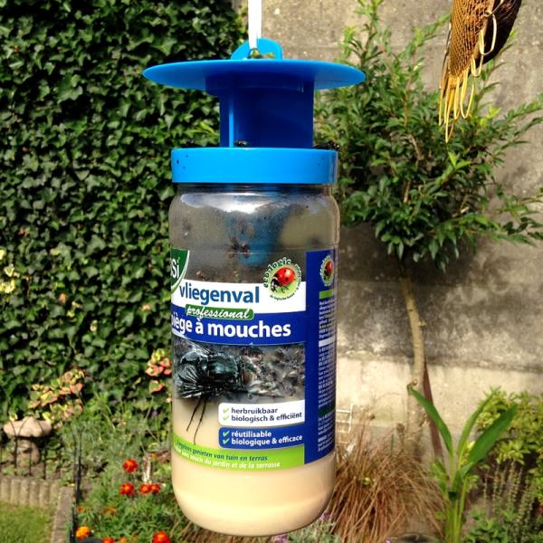 Piège unique, très efficace pour la plupart des espèces de mouches. Le piège à mouches est réutilisable et capture jusqu'à 20.000 mouches à la fois. Combat les mouches à l'extérieur et diminue ainsi le nombre de mouches qui entrent à l'intérieur.