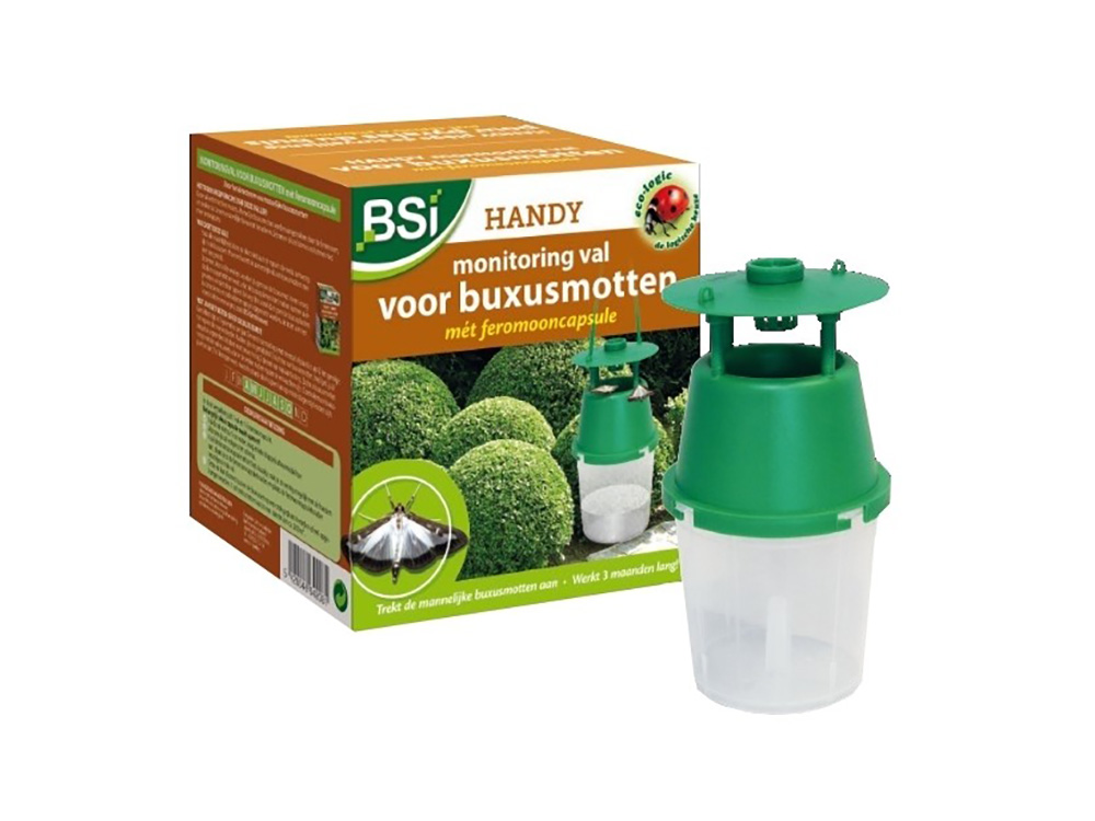 Cette coupelle de récupération pratique et compacte de BSI convient à la surveillance des papillons de buis. Avec les capsules de phéromones incluses, le piège fonctionne jusqu’à trois mois.
