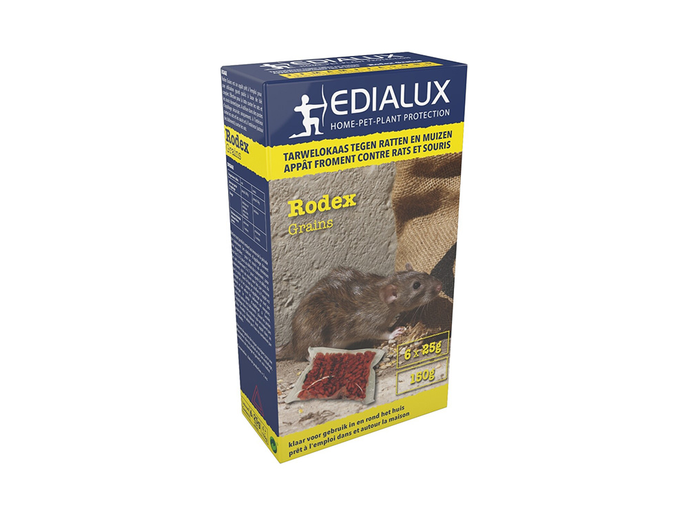 Les céréales Rodex d’Edialux sont des appâts prêts à manger attrayants à base de blé. C’est un moyen efficace de contrôler les souris et les rats à l’intérieur et contre les rats à l’extérieur, autour des bâtiments. L’appât est fourni avec une boîte à appâts pour administrer le poison en toute sécurité.