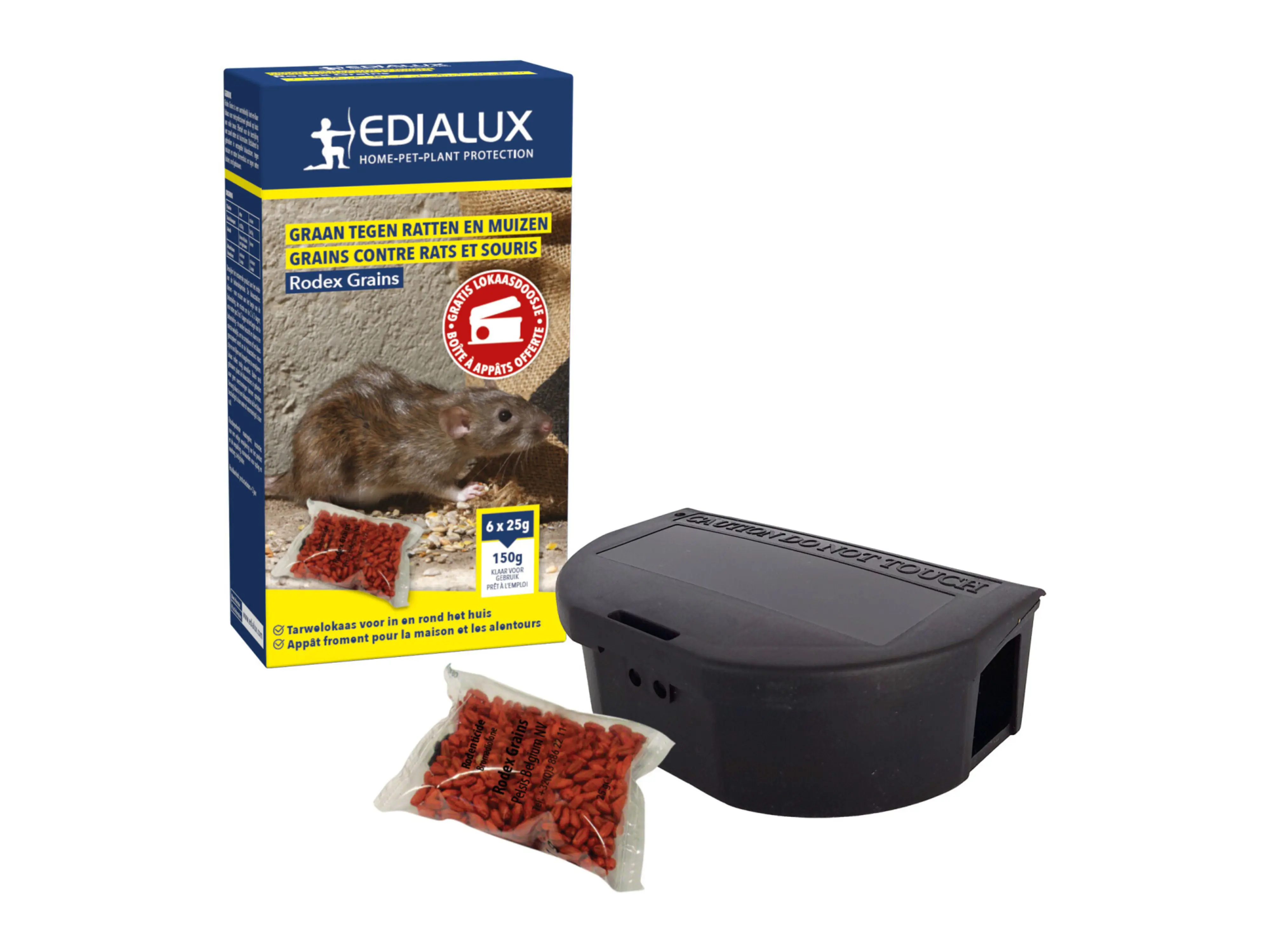 Céréales Edialux Rodex contre les rats et les souris + boîte d’appât libre - 150 g