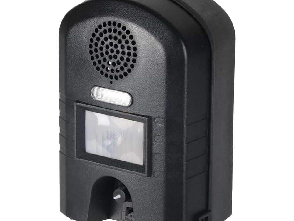 Cet appareil repousse les chiens, chats, martes, lapins, renards,... D’une manière simple. Dès que le détecteur infrarouge détecte un mouvement, l’appareil fonctionne pendant 7 secondes. L’appareil émet un son ultrasonique qui surprend l’intrus et quitte l’endroit. La lampe torche (optionnelle) augmente l’effet de sursaut. Avec le bouton de sélection sonore, vous pouvez choisir quel animal vous souhaitez chasser.