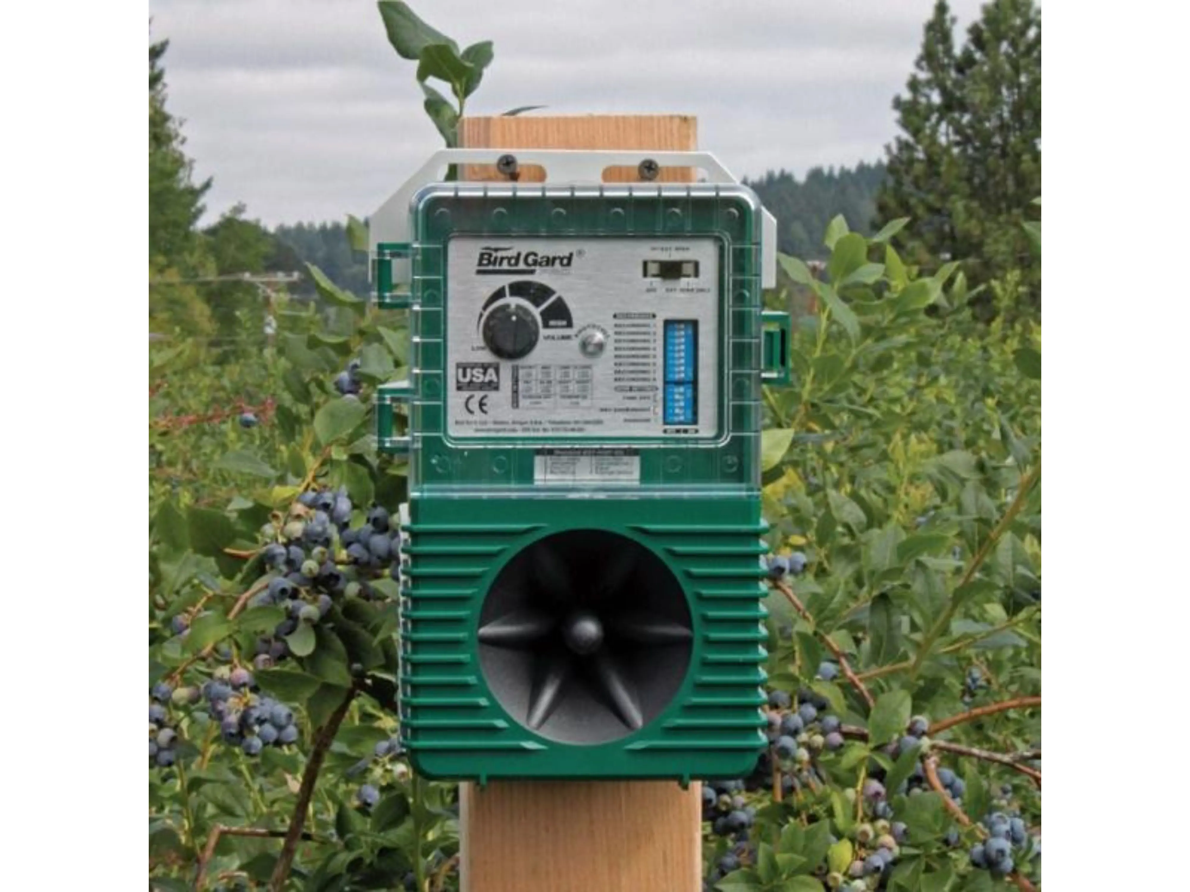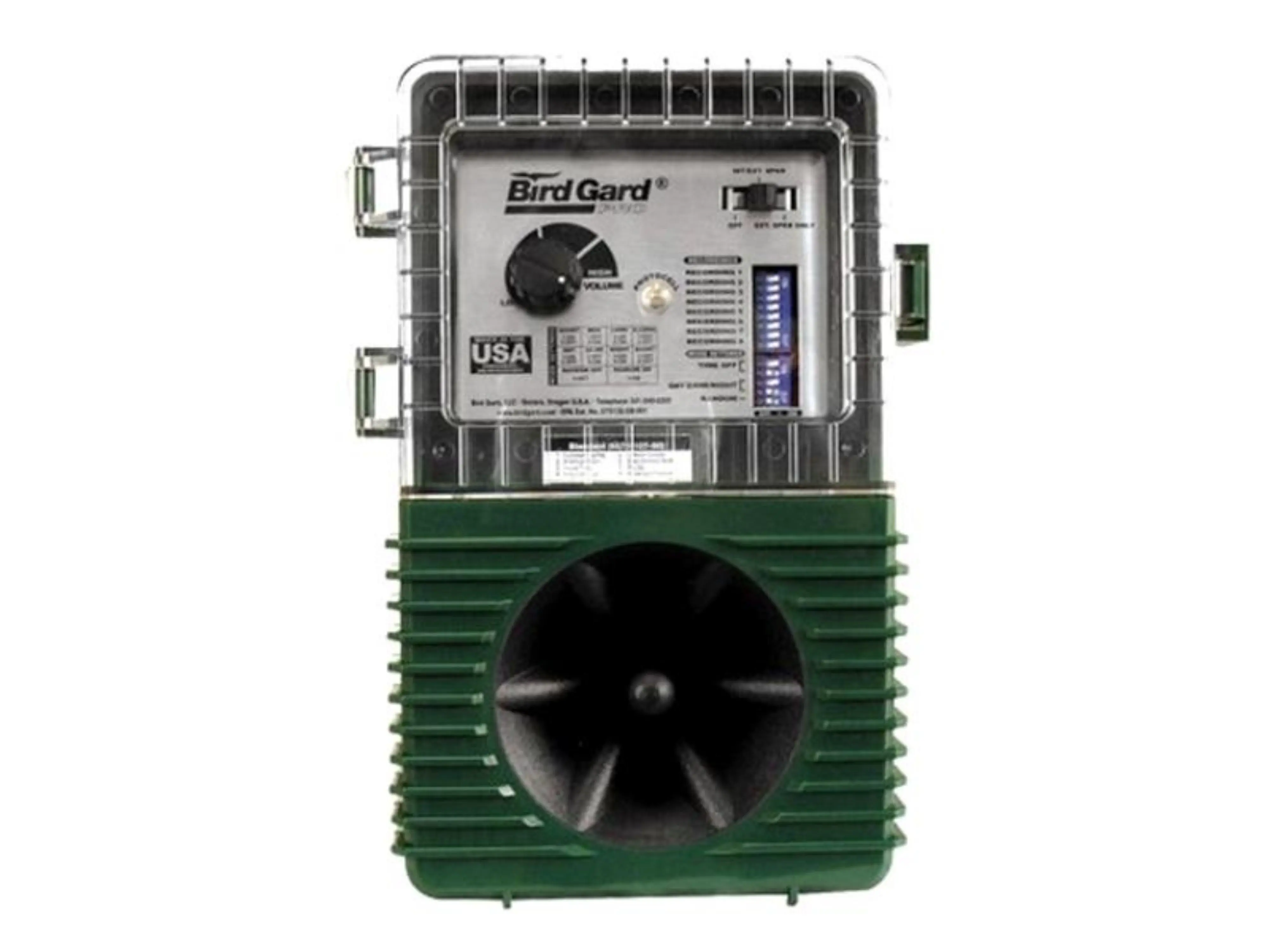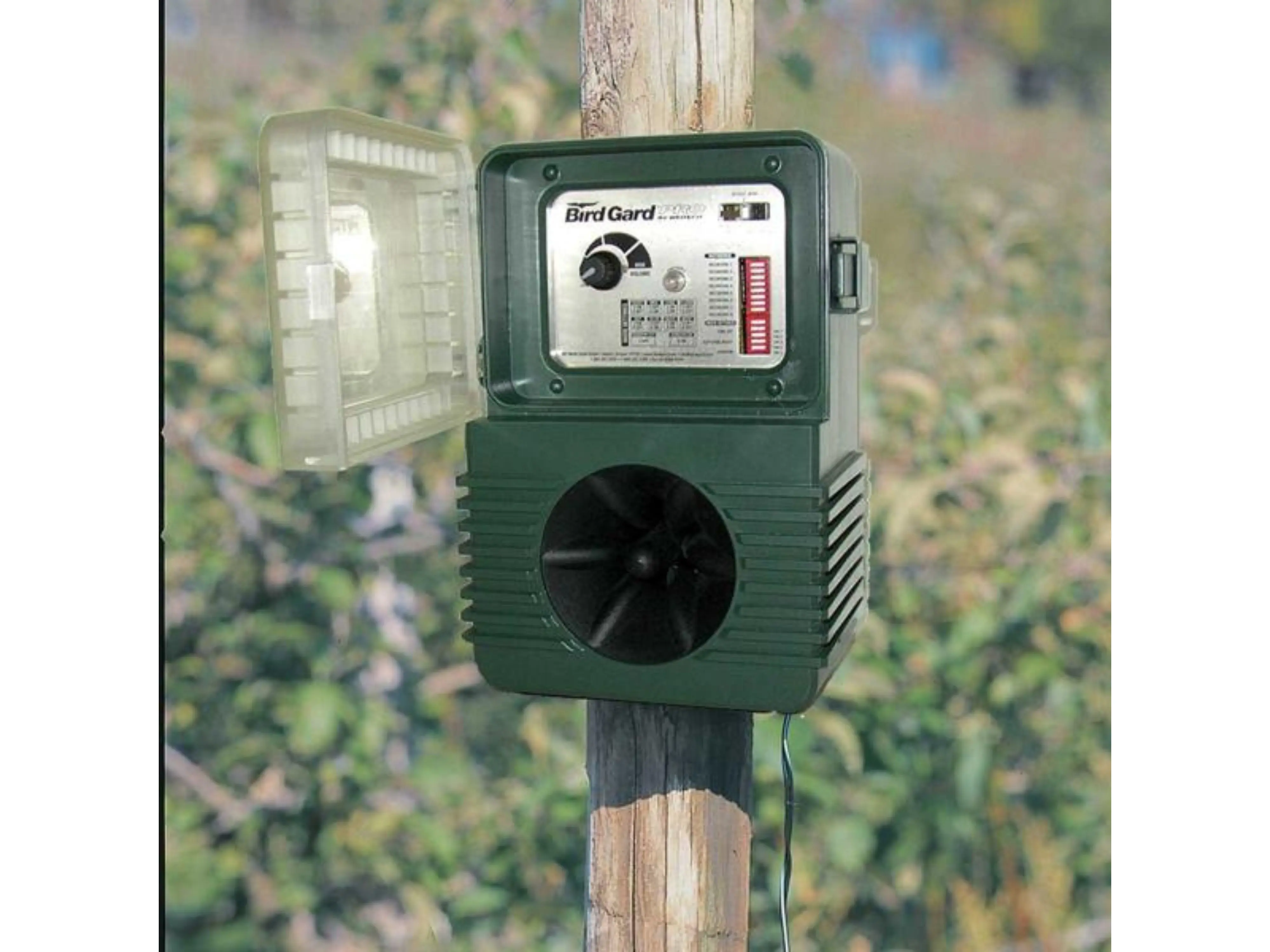 Le répulseur d’oiseaux possède un haut-parleur intégré et un amplificateur dans un boîtier durable et résistant aux intempéries, et il est facile à fixer à un poteau ou à une clôture avec les matériaux de montage inclus. Le répulseur d’oiseaux est équipé d’un adaptateur 12,0 V avec un câble d’environ 1,5 mètre.