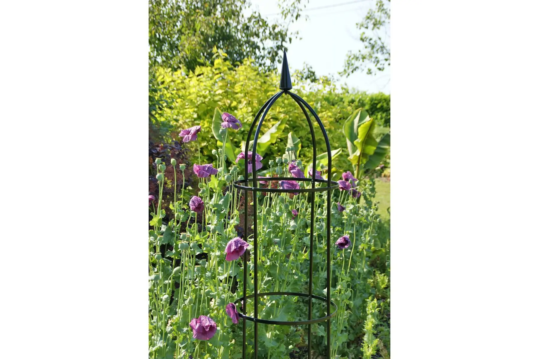 Bel accessoire de jardin pour aider vos plantes grimpantes. Cet obélisque apporte un soutien aux plantes grimpantes dans une bordure, un massif, un bac à fleurs ou un pot. Sur le sommet se trouve une pointe métallique. L'obélisque est assez stable pour supporter le poids des plantes. Excellent pour accueillir des rosiers grimpants, des clématites, du jasmin, une belle passiflore et d'autres plantes grimpantes.