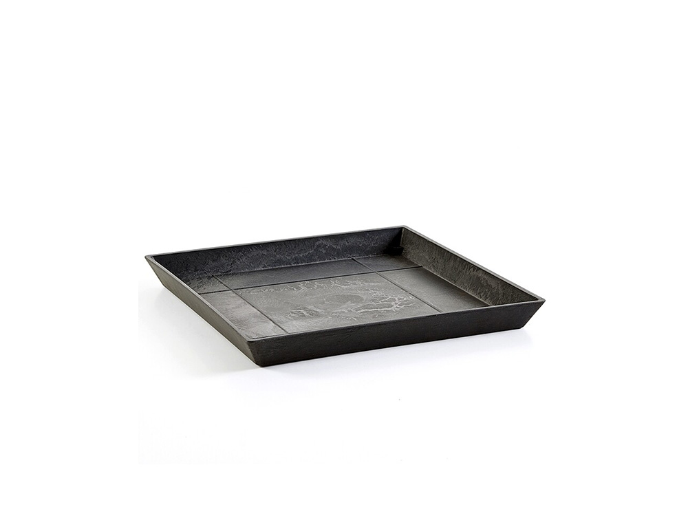 Soucoupe carré en plastique recyclé ECOPOTS Rotterdam, de couleur gris anthracite. Avec cette soucoupe carrée, vous évitez que l'excès d'eau de votre pot de fleurs ne coule sur le sol. De plus, vous pouvez ainsi facilement arroser vos plantes par en dessous afin que les racines puissent directement absorber l'eau.
