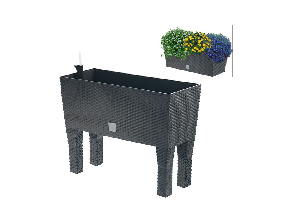 Joli bac à plantes en plastique durable avec système d'arrosage très pratique. Ce bac à plantes décoratif en gris anthracite est prévu pour l'intérieur ou l'extérieur et dispose d'un ingénieux système d'irrigation.