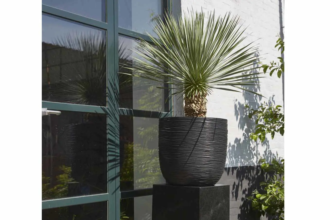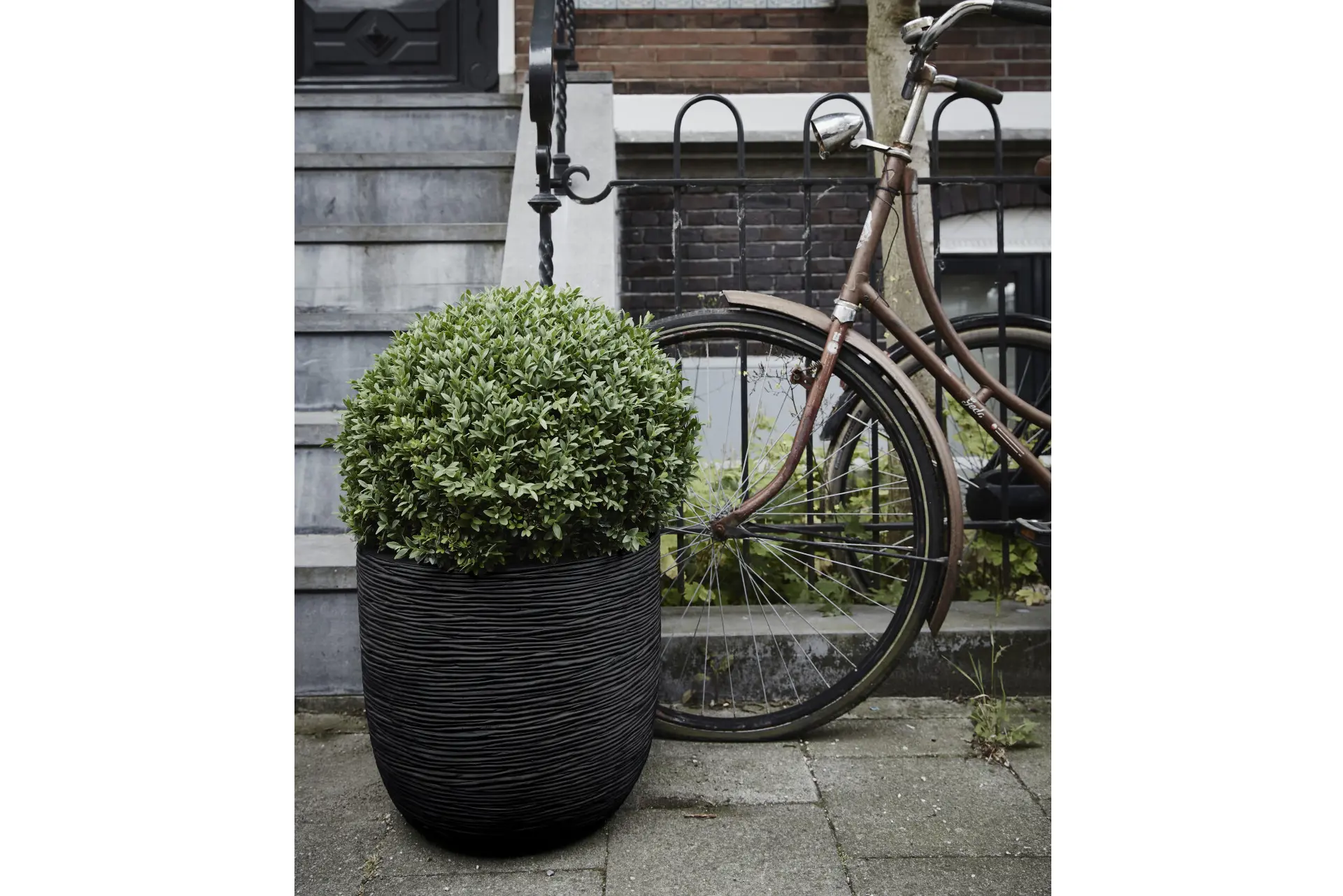 Ce pot de fleurs de Capi Europe a un design remarquable. Il est fabriqué à partir de matériaux recyclés, un mélange de polyéthylène et de fibres de bois, et peut être utilisé aussi bien à l'intérieur qu'à l'extérieur. Tous les pots de la collection Rib présentent une texture inspirée des lignes dansantes des roseaux tressés.