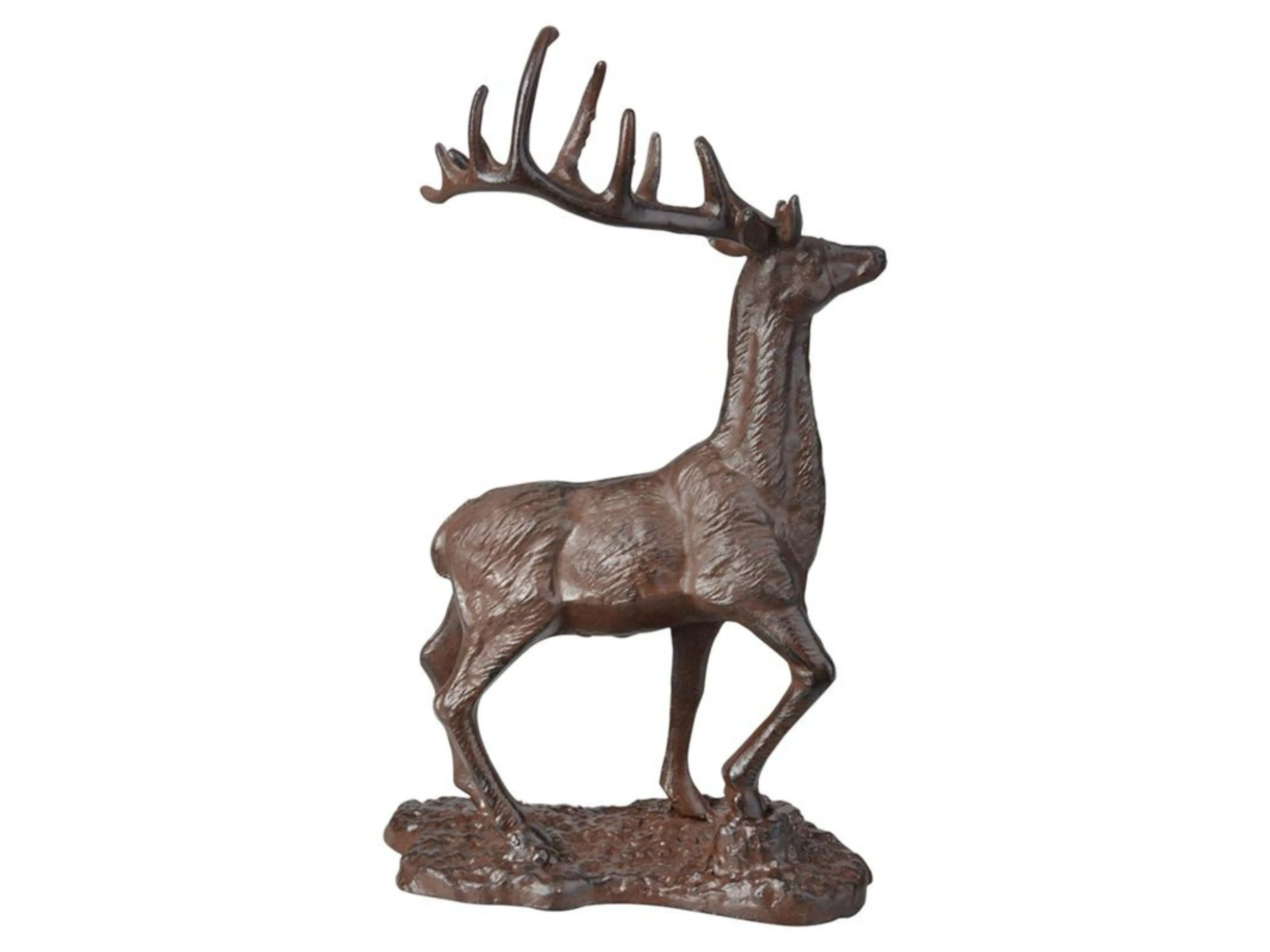 Que vous le placiez parmi la verdure, sur un piédestal ou comme attrayant à la porte d’entrée – ce cerf rouge garantit une touche atmosphérique et naturelle.
