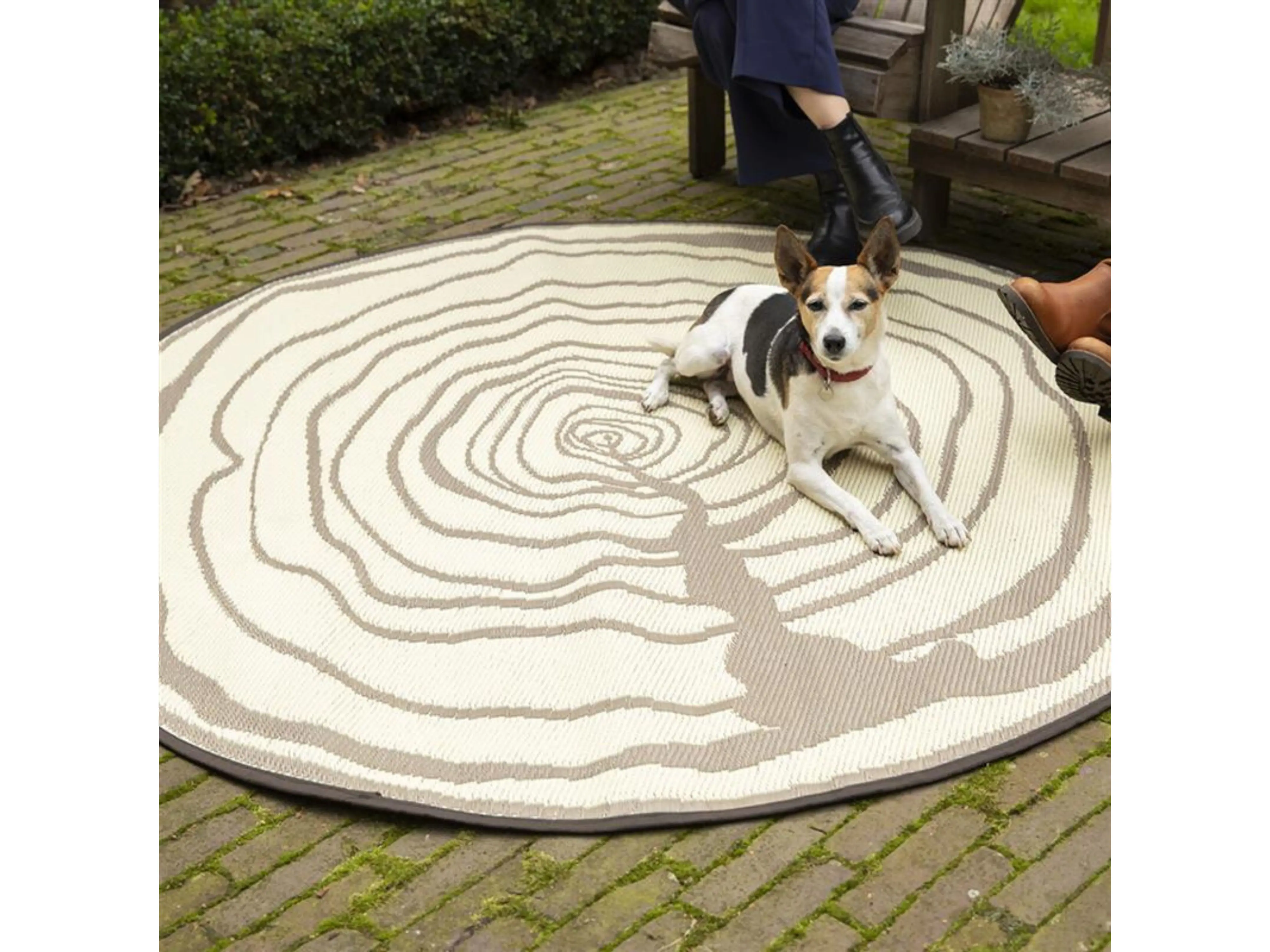 Ce tapis de jardin rond avec des anneaux annuels est un magnifique ajout au jardin ou à la terrasse. Il est tissé de telle sorte que ce tapis de jardin d’extérieur peut être utilisé des deux côtés .