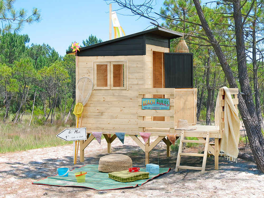La maison de jeu en bois Oakland est une structure solide faite en bois de qualité séché. Elle est située à une hauteur de 60 cm avec l'apparence d'une cabine de plage, ce qui lui permet de s'intégrer parfaitement dans tout jardin. La maison de jeu offre non seulement un environnement de jeu sûr, mais aussi un plaisir sans fin. Quatre enfants peuvent s'amuser en même temps !